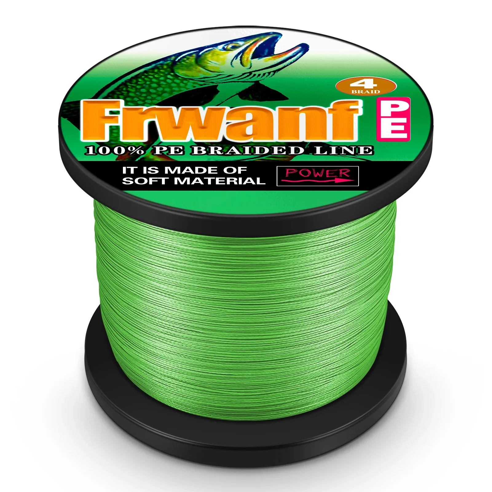 Frwanf-línea multifilamento japonesa de 4 hebras, hilo de pescar, línea trenzada de PE japonesa, línea de pesca trenzada súper fuerte, 1500M, 2LB-100LB1.Línea de pesca de 1500M trenzada2.Línea de PE de 4 hebras, construcción trenzada única, hecha de fibras de PE de ultra alta resistencia.3.Revestimiento especial de superficie, más suave que nunca.4.Resistencia y tenacidad excepcionales, más duraderas, difíciles de tirar.5.Memoria extremadamente baja.6.El material de calidad garantiza una línea trenzada que no destiñe.