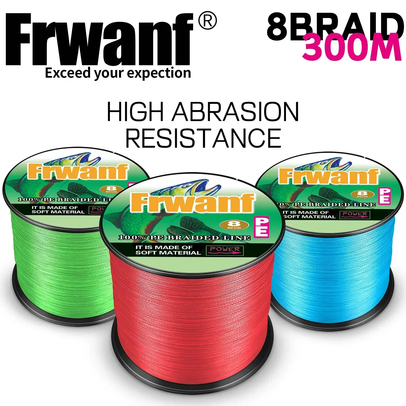 Frwanf-línea de pesca trenzada de 8 hebras, 300M, multifilamento, pesca de carpa, línea de camuflaje trenzada japonesa, accesorio de pesca, línea de PE