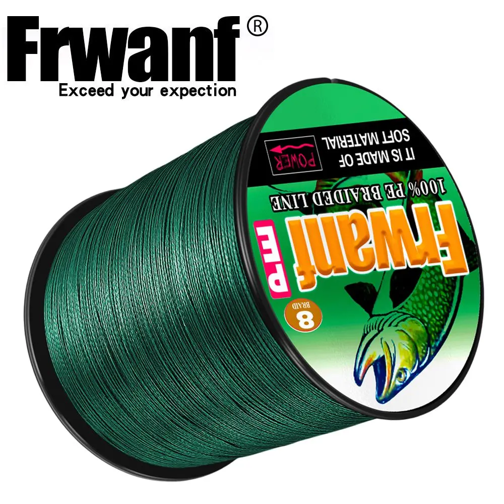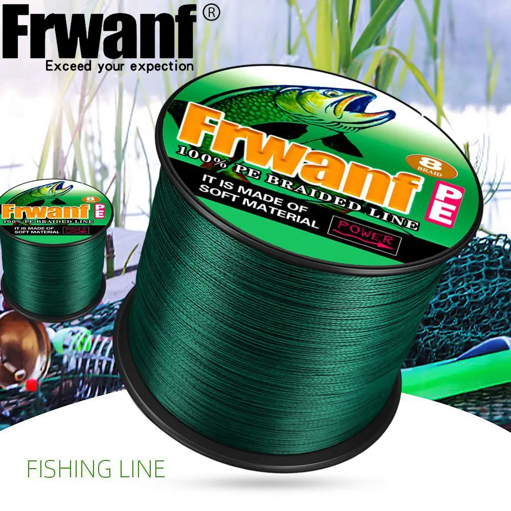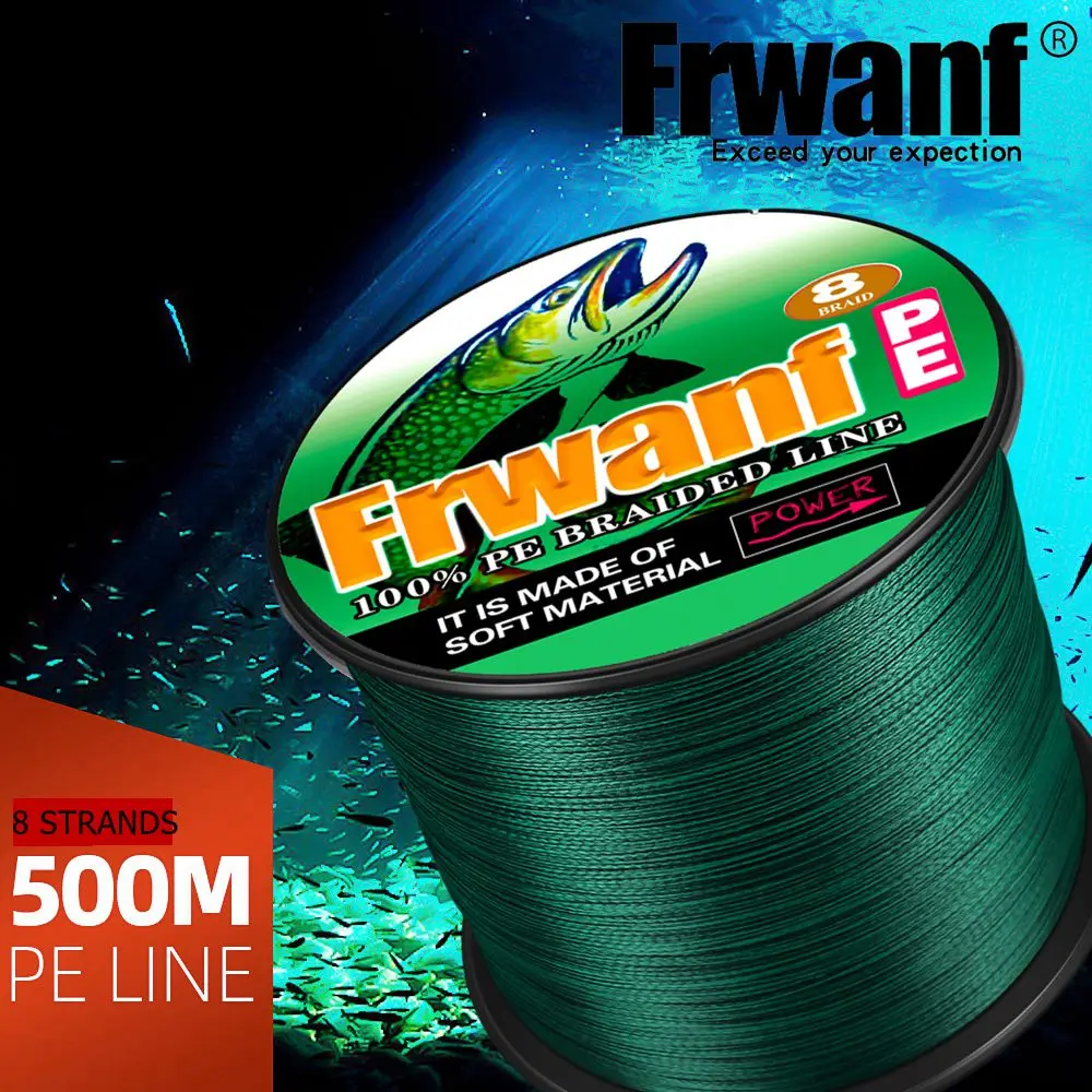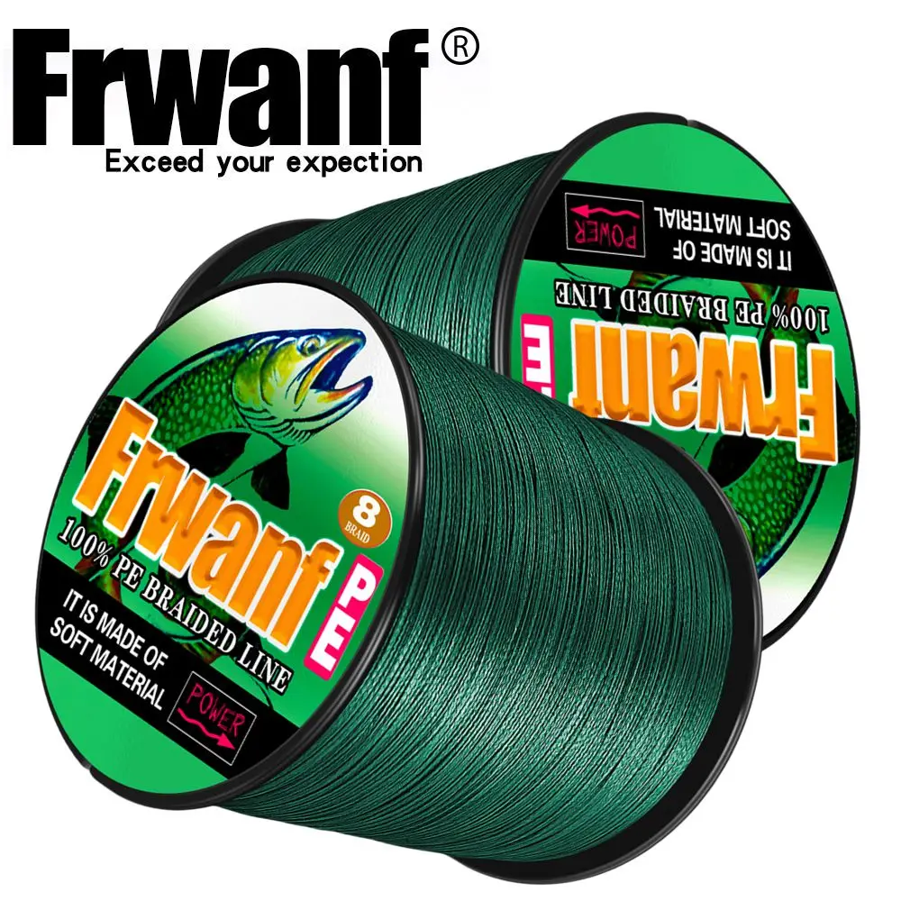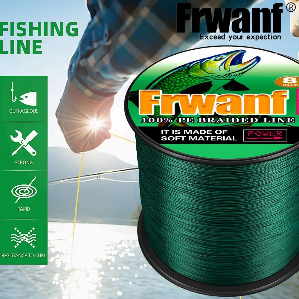 Frwanf-sedal de pesca trenzado de PE, resistente a la abrasión, 8 hebras, superfuerte, antimordedura, accesorios de pesca, 500M, verde musgo
