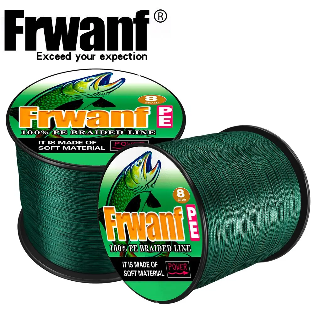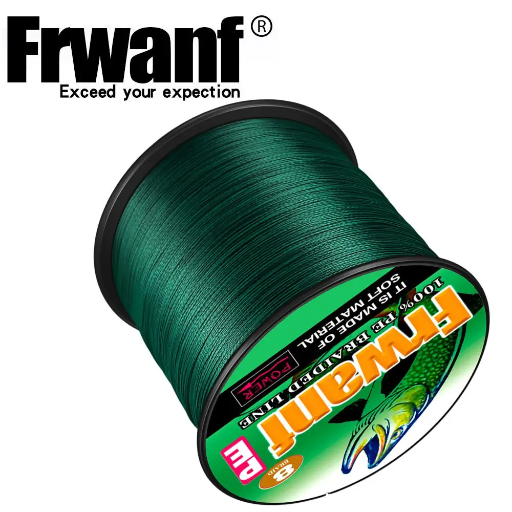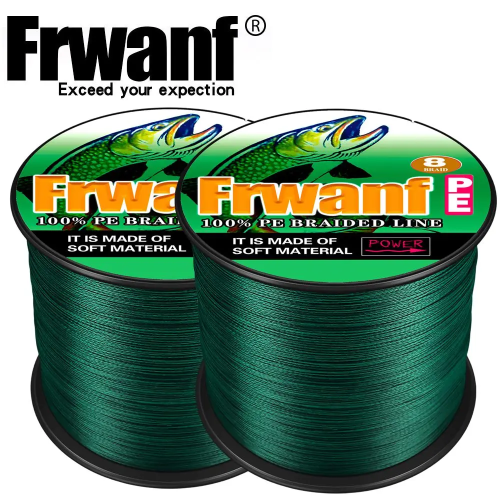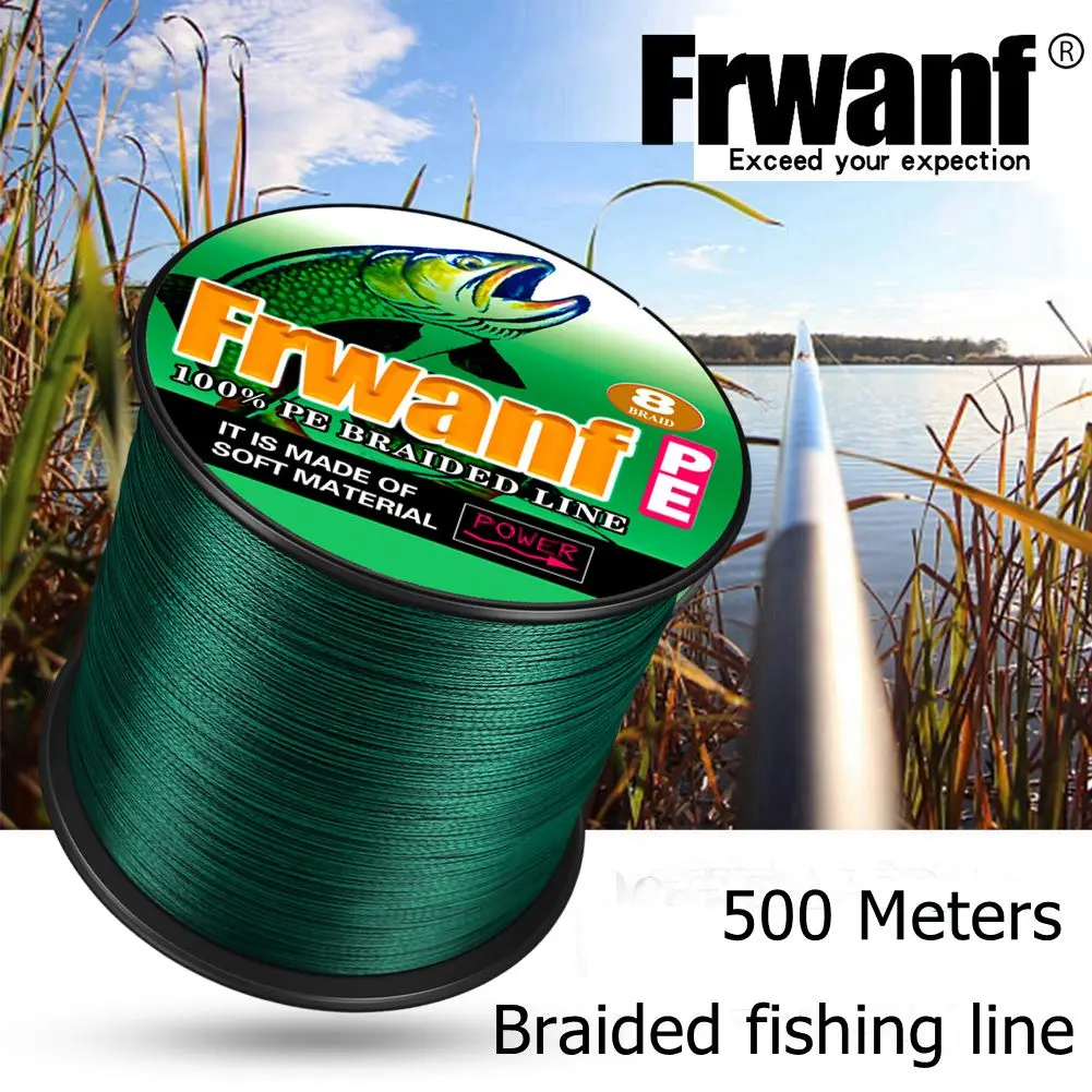 Frwanf-sedal de pesca trenzado de PE, resistente a la abrasión, 8 hebras, superfuerte, antimordedura, accesorios de pesca, 500M, verde musgo