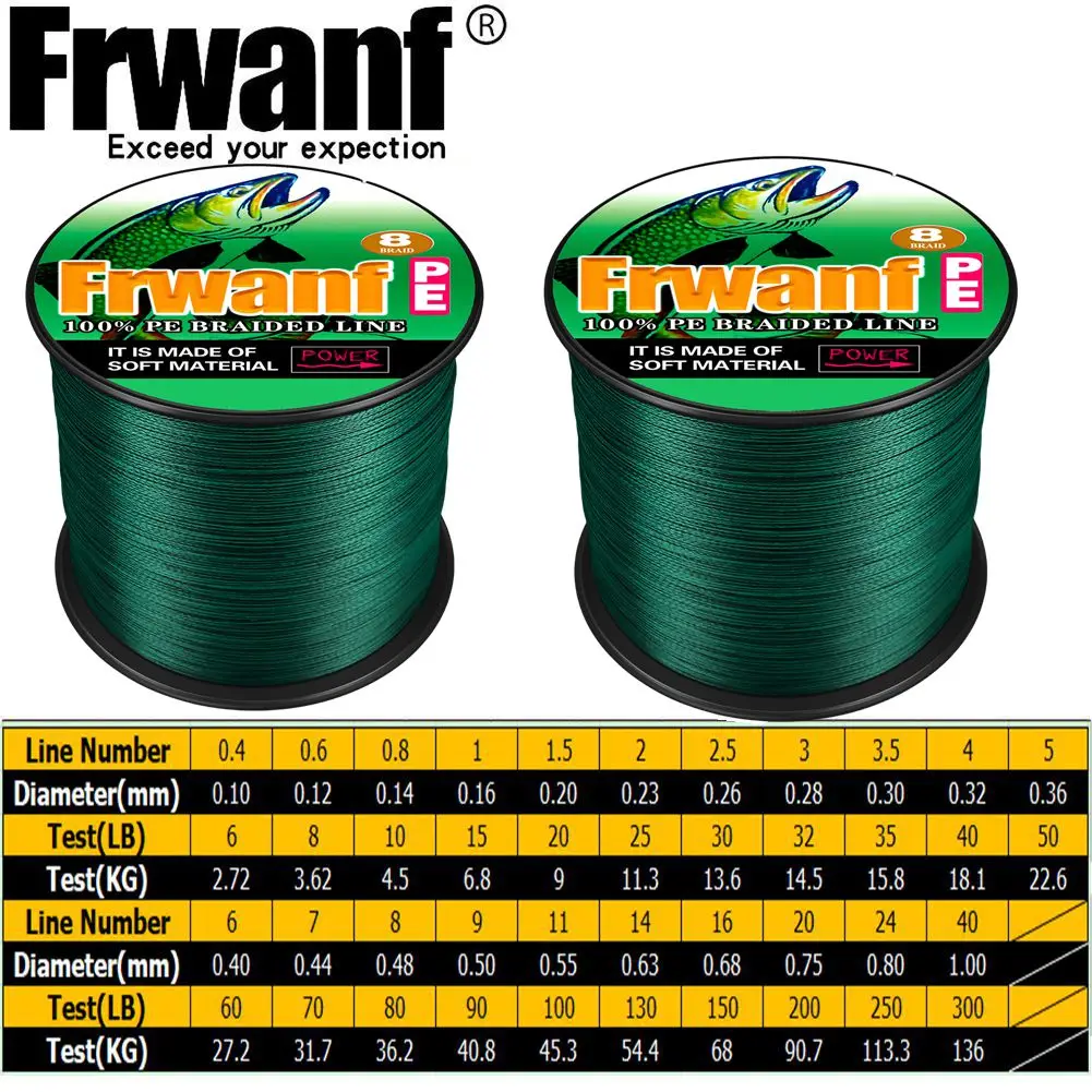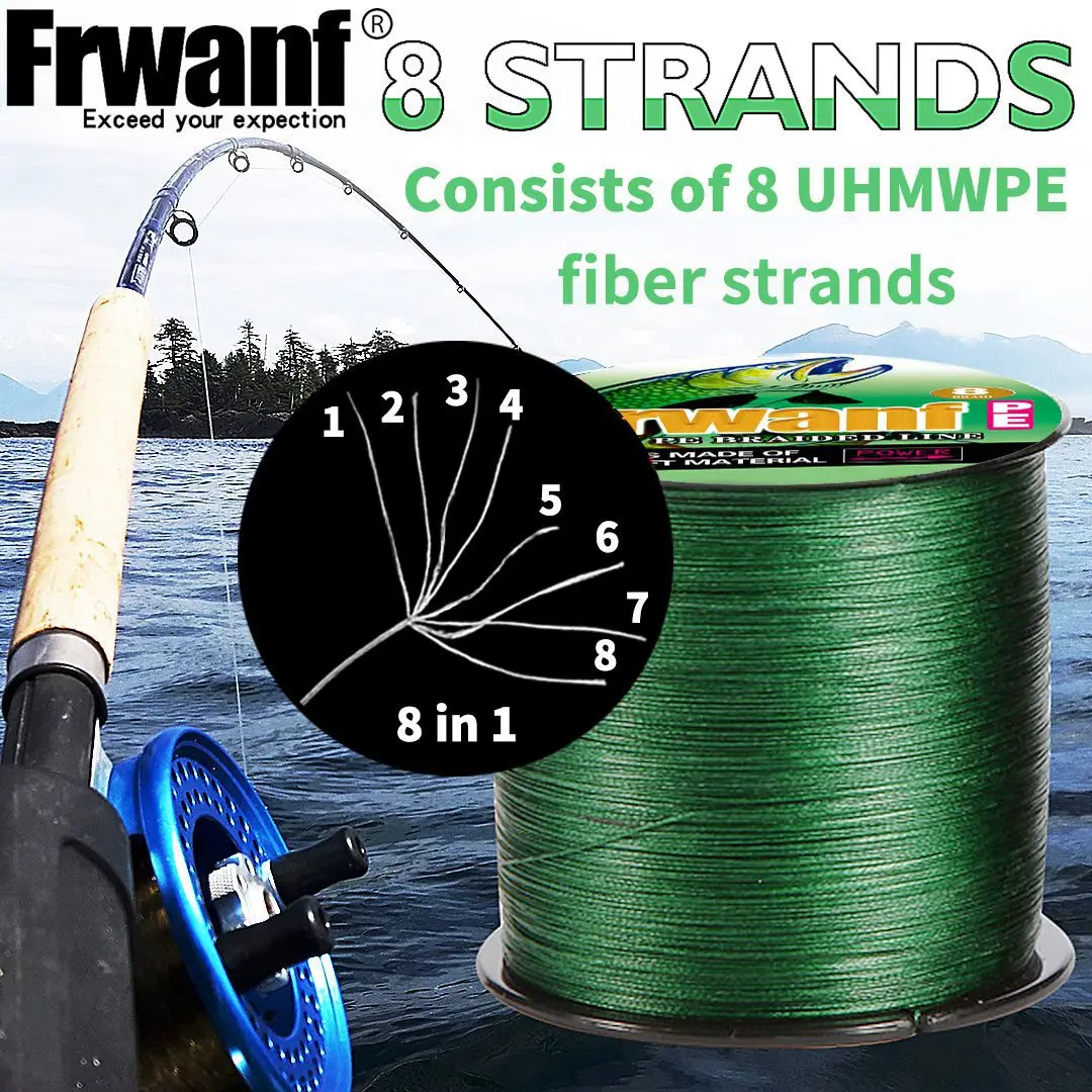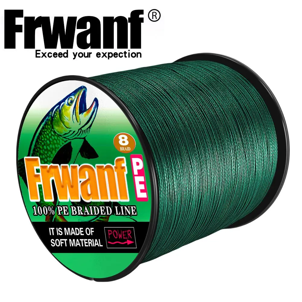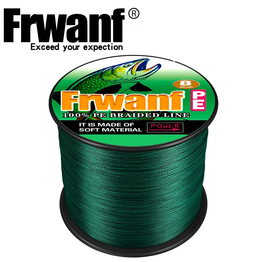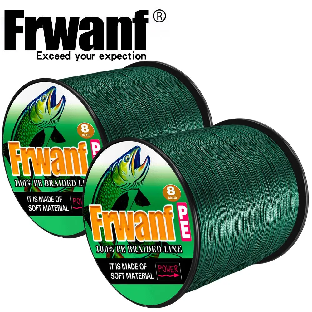 Frwanf-sedal de pesca trenzado de PE, resistente a la abrasión, 8 hebras, superfuerte, antimordedura, accesorios de pesca, 500M, verde musgo