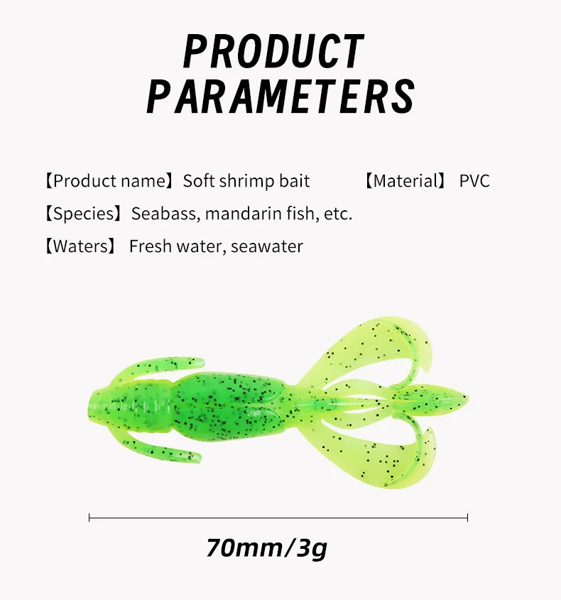 FSDZSO-SEÑUELOS Crazy de 70mm/5 piezas, señuelos blandos para pesca de camarones y langostas, de plástico suave