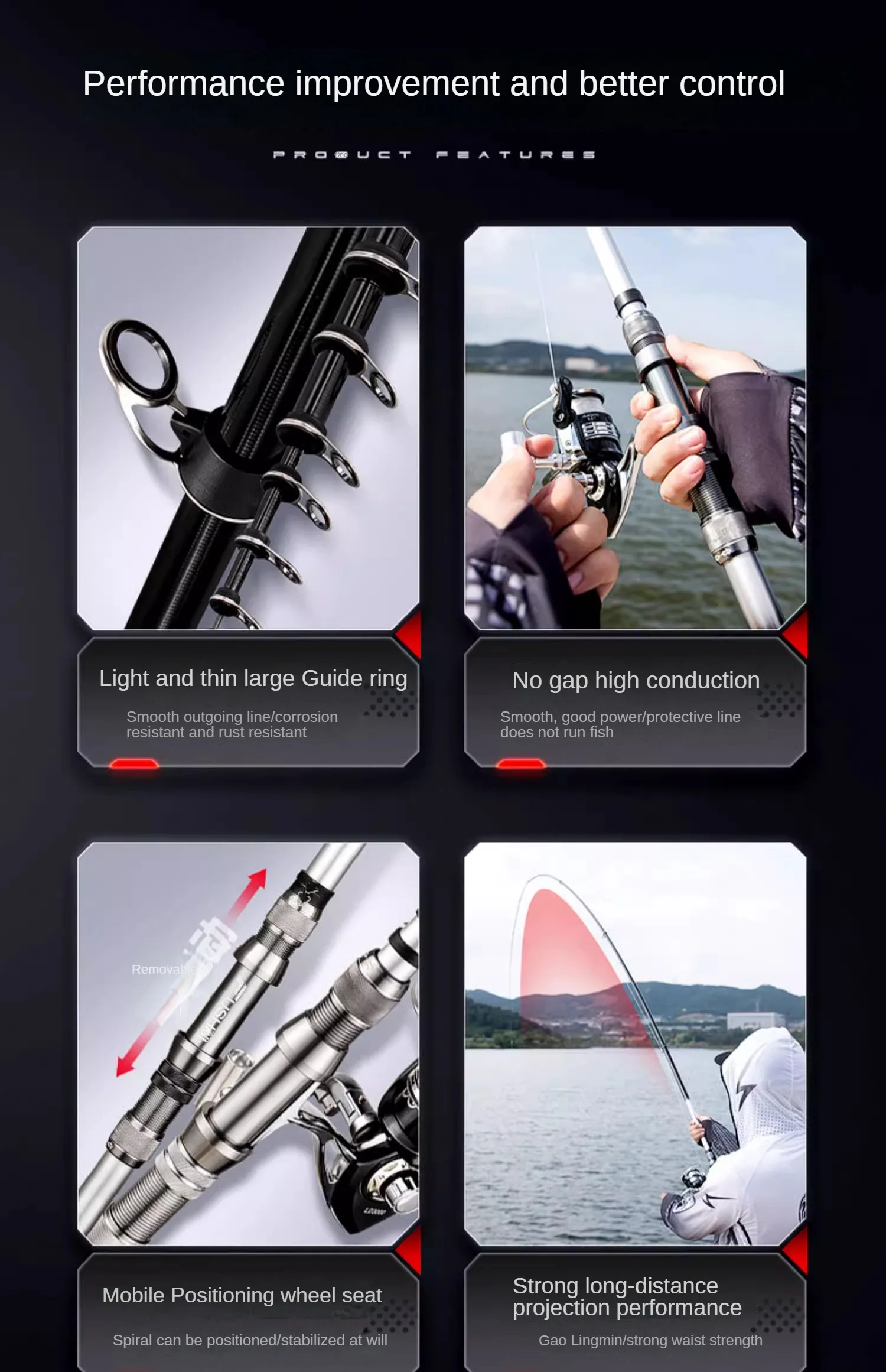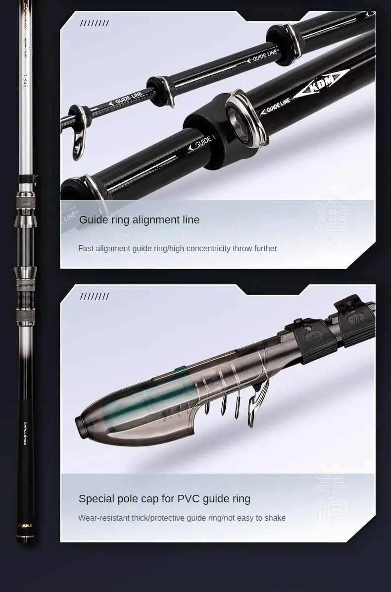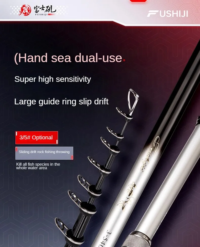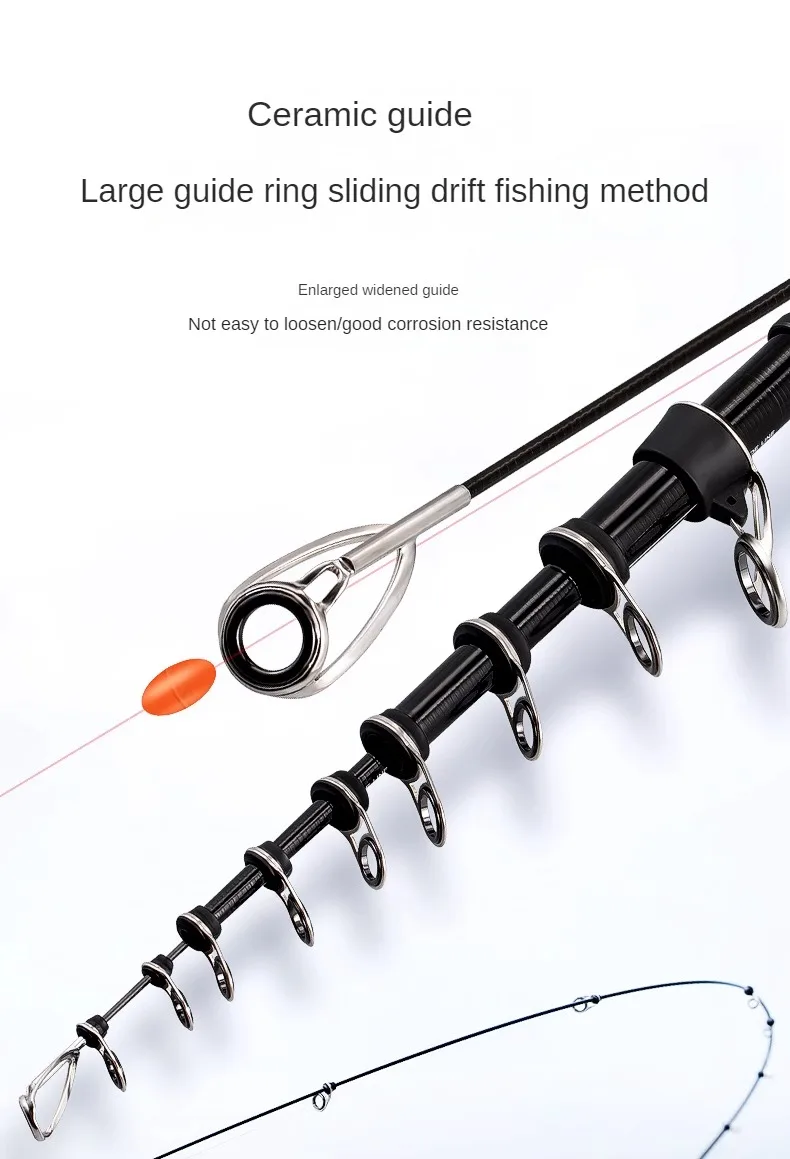 FSJ caña de pescar de carbono de alta distancia, caña de lanzamiento de mano de mar de doble uso, anillo de guía grande a la deriva, boya de Pesca