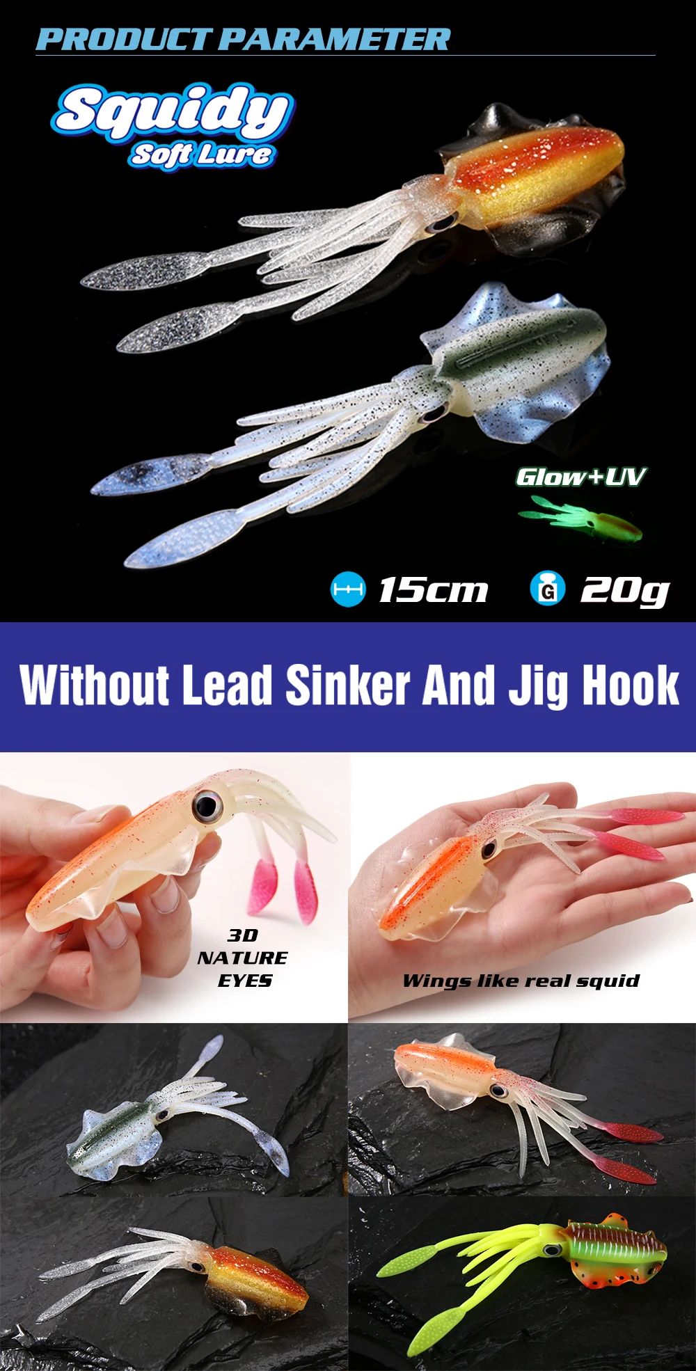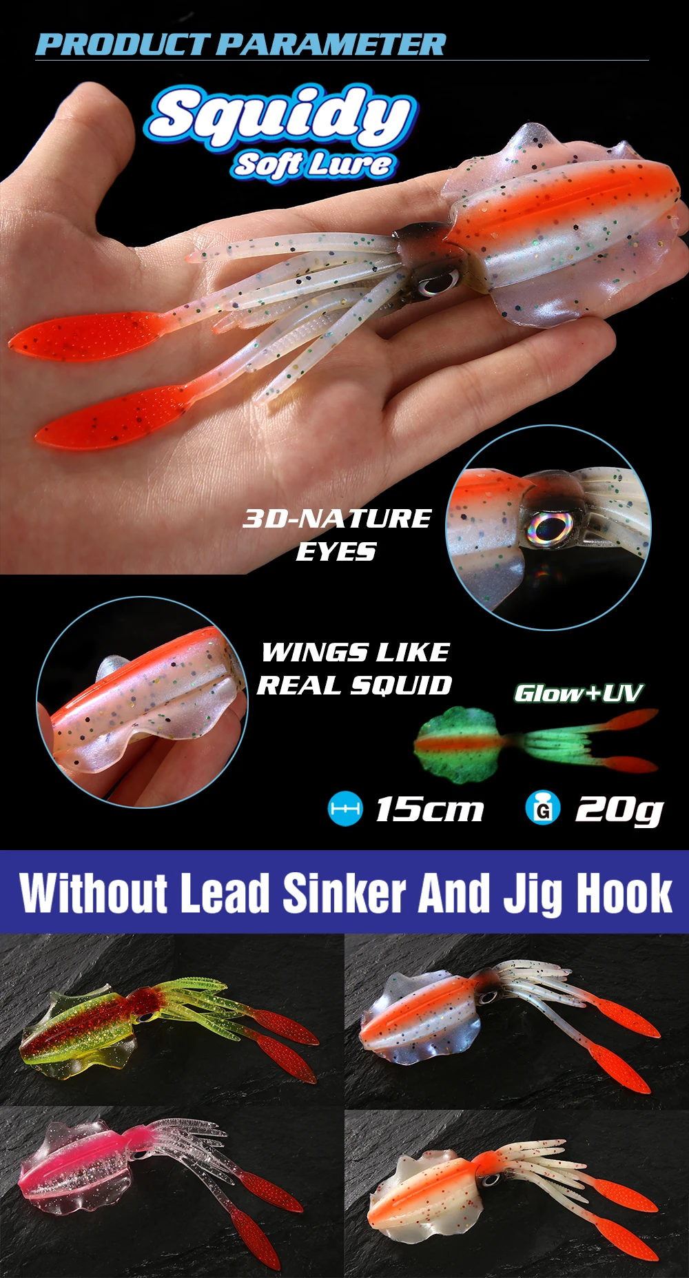 1. Diseño de calamar luminoso grande, crea acciones de natación realistas en el agua.