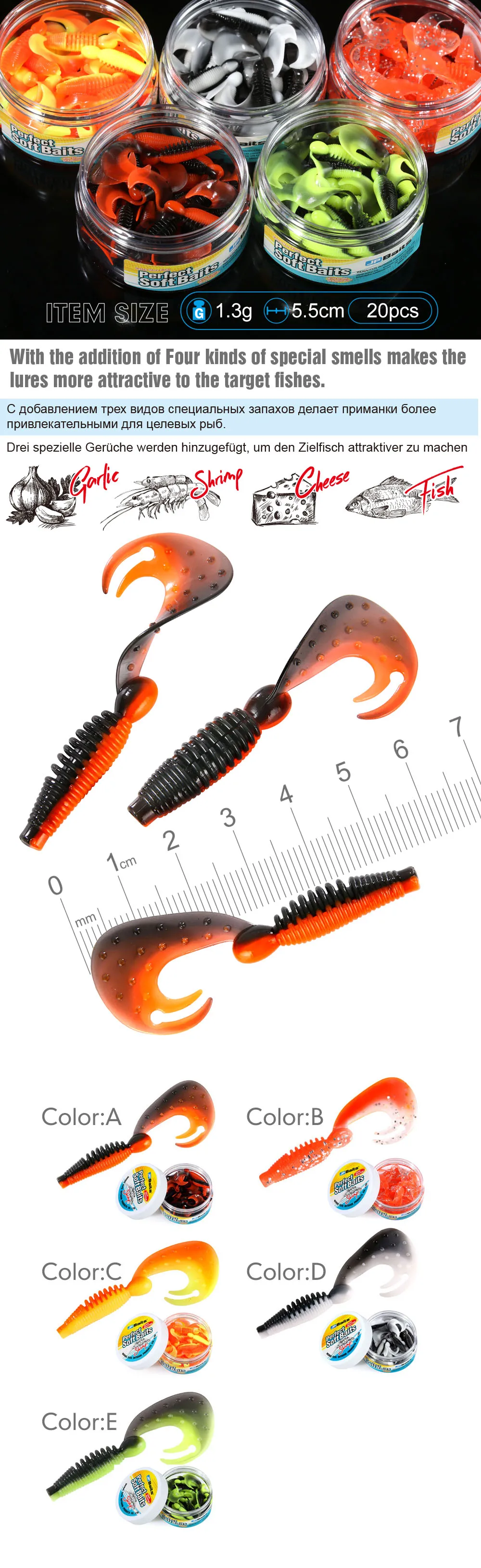 FSTK Worms cebo blando de cola larga, Señuelos de Pesca de 55mm, 1,3G, Wobblers, carpa, señuelos blandos de pesca, señuelos artificiales de silicona