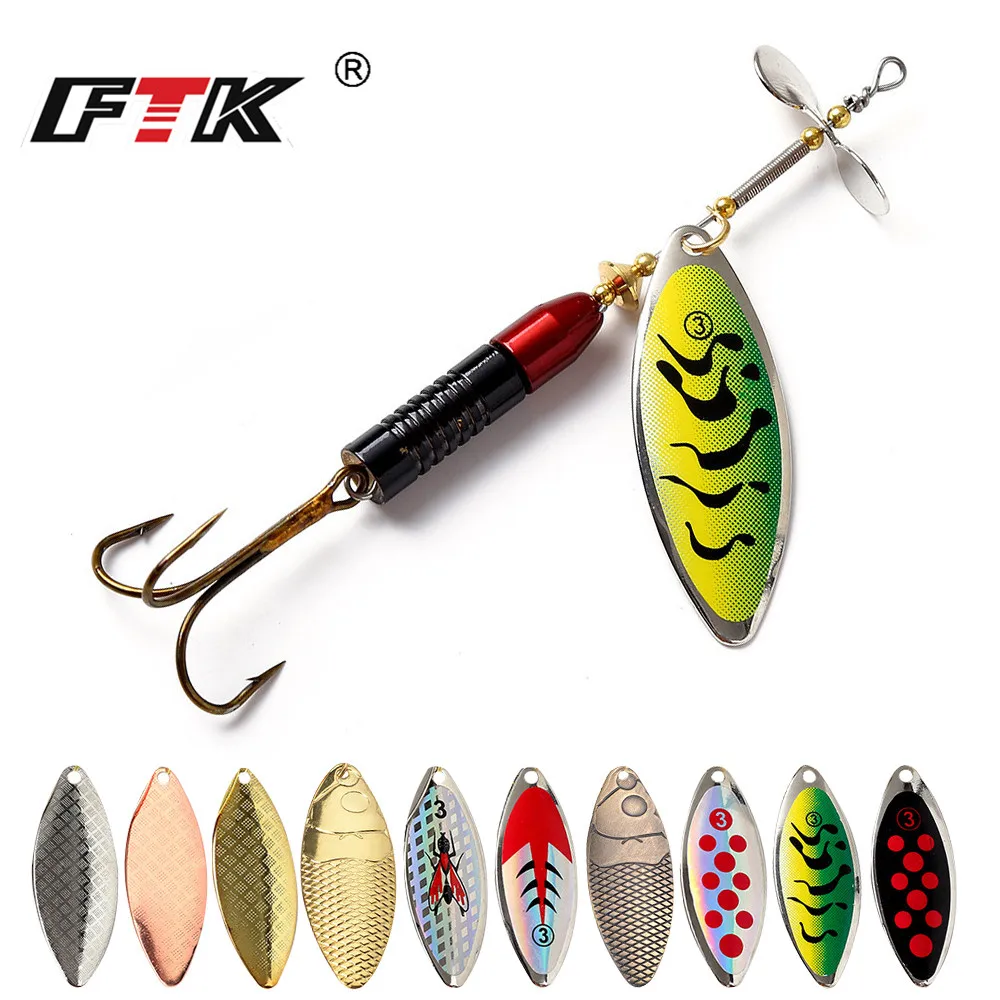 FTK 1 pieza de cebo giratorio colorido de fundición larga, Señuelos de Pesca, Spinner, lentejuelas, paillette, carpa