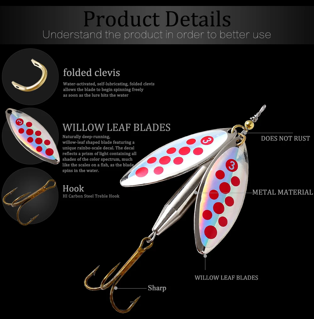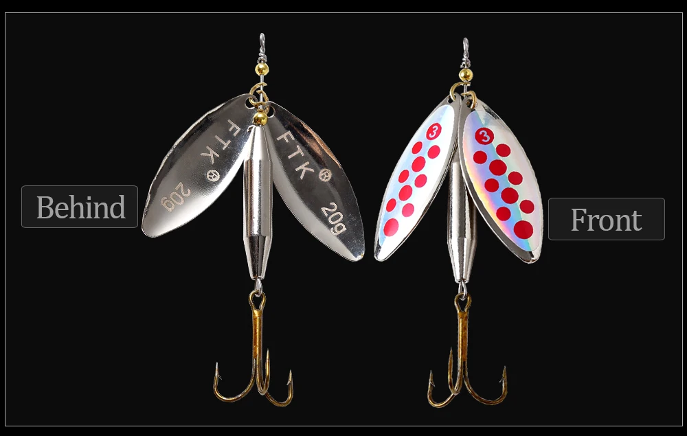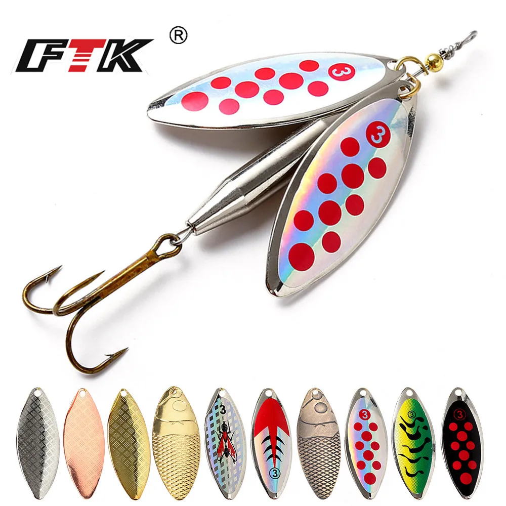 FTK 1 pieza doble Spinner cebo colorido de fundición larga Señuelos de Pesca Spinner lentejuelas Paillette carpa