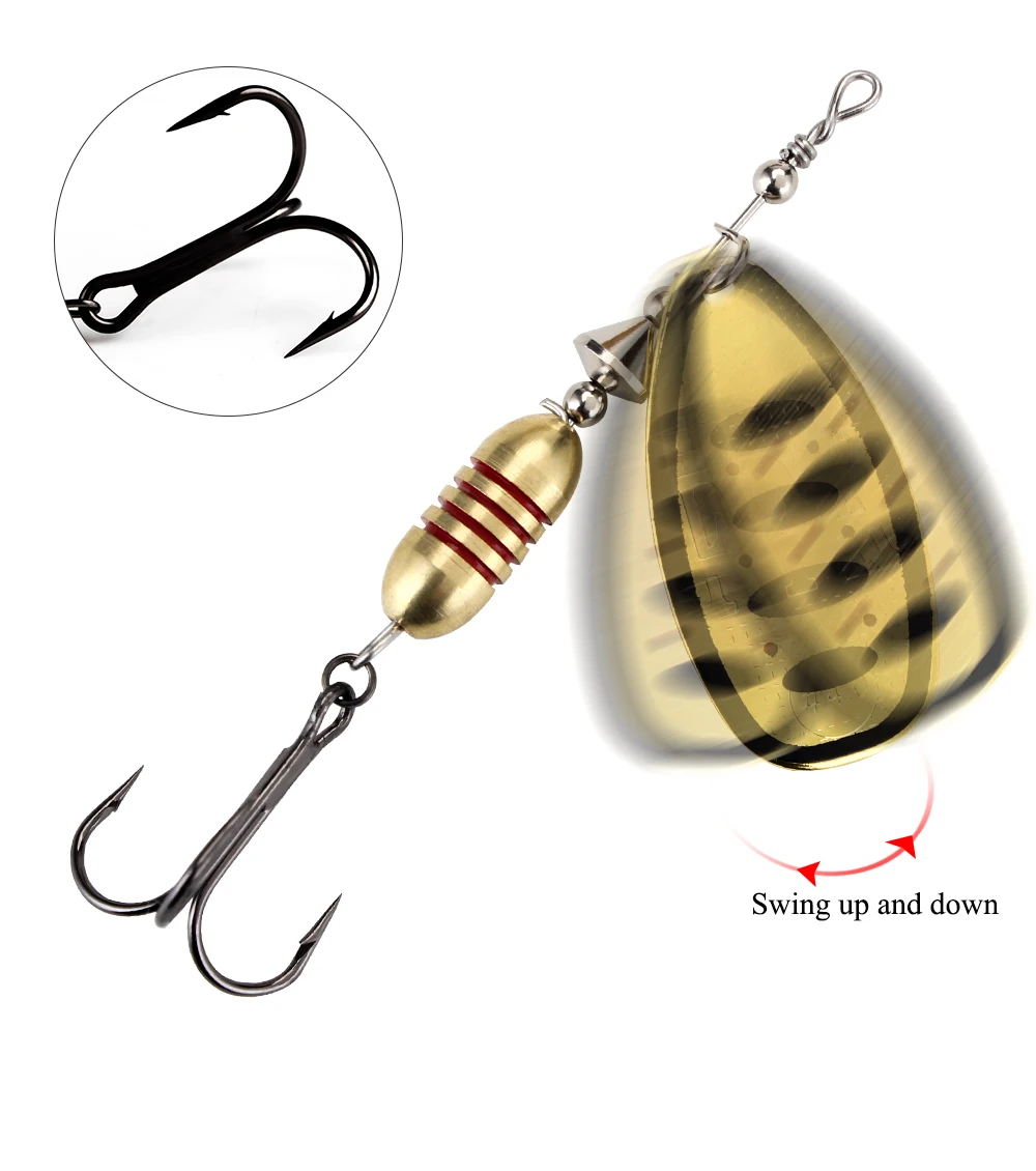 FTK 1 uds/2 uds cebo giratorio señuelo de pesca de Metal 18g cebos duros lubina Pike cuchara anzuelo triple aparejos de pesca de alta calidad