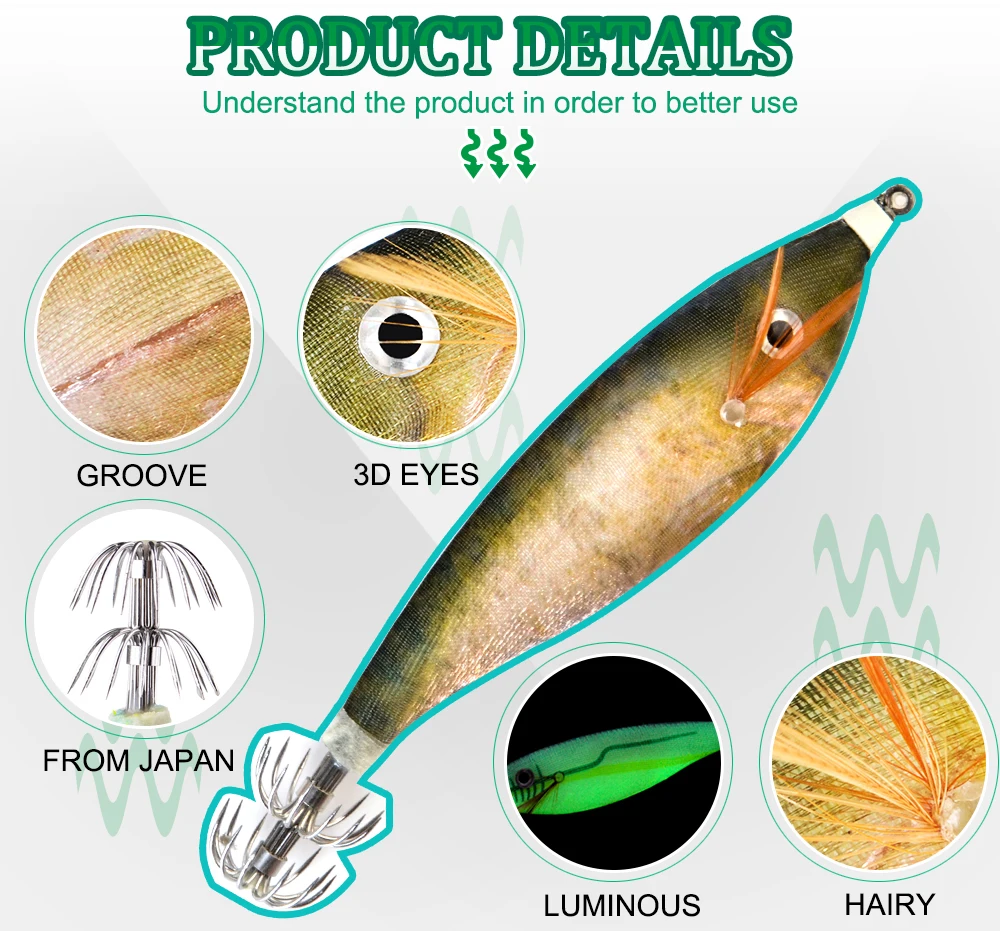 FTK, 1 Uds., plantillas luminosas de calamar, señuelo de pesca con ojos 3D, 16g, pulpo, sepia, madera, camarón, calamar, anzuelo, cebo Artificial duro, pesca en el mar