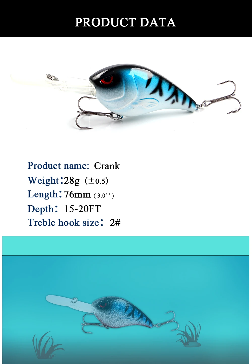 FTK, 1 unidad, 76mm, 28g, señuelo de pesca Crankbait, cebo de manivela que se hunde, Wobblers de pesca de lubina, Swimbait Minnow, cebo Artificial, aparejos de pesca