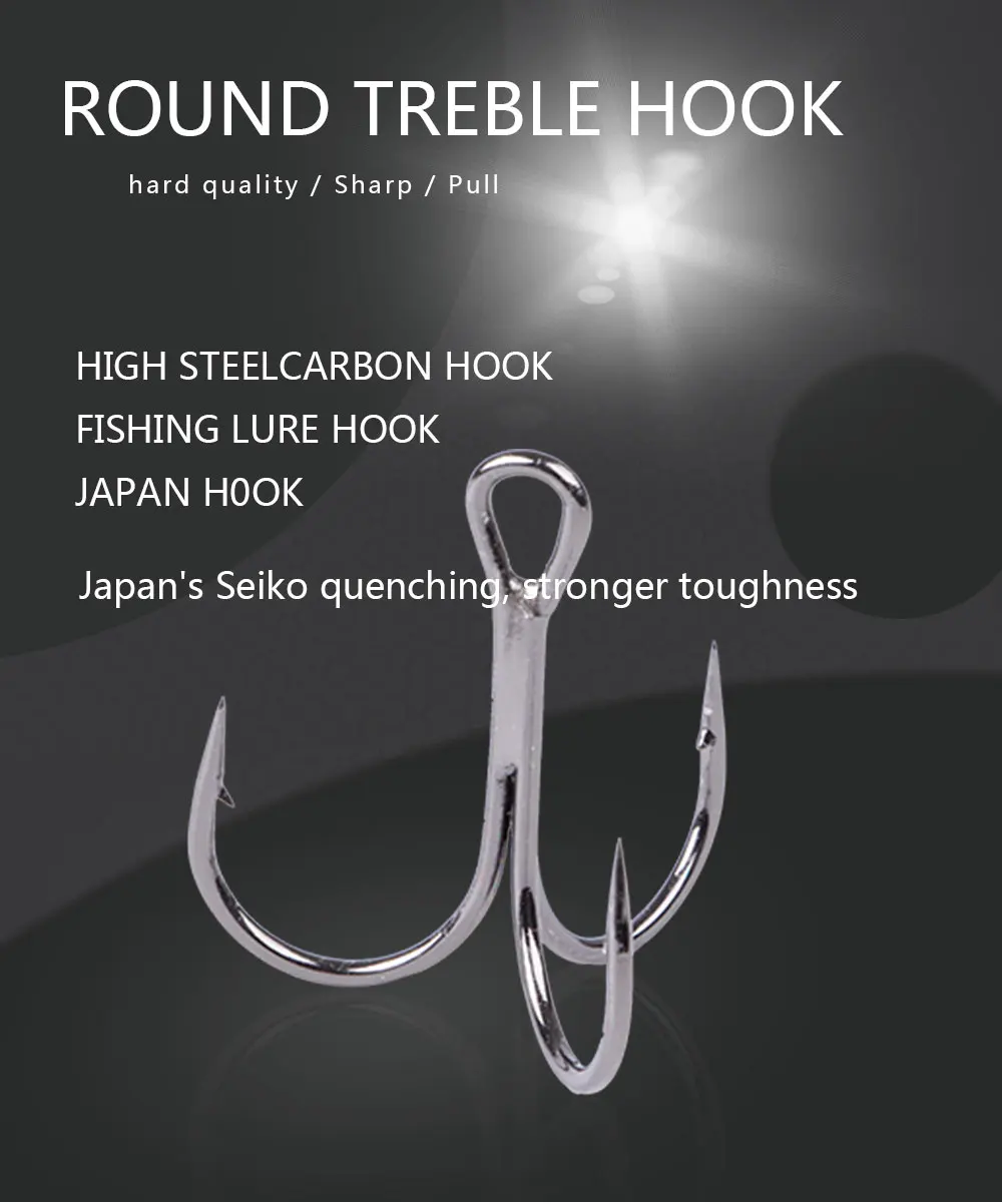 FTK 10-20 unids/pack anzuelo triple redondo Japón anzuelo de señuelo de pesca de acero rico en carbono anzuelo de púas para Lucio anzuelos de alta calidad