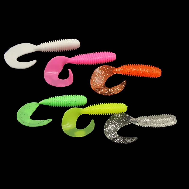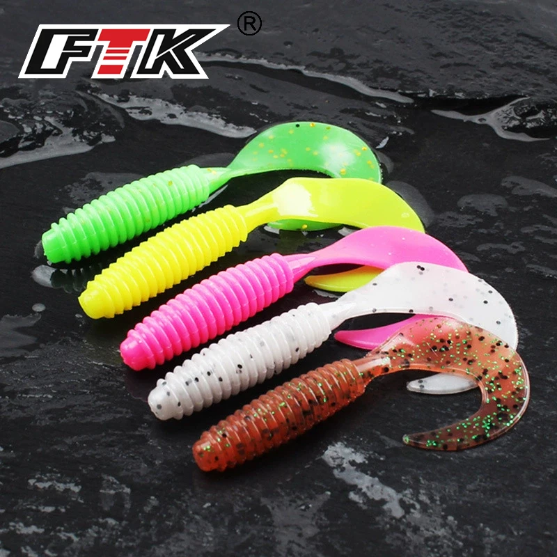 FTK 10 Uds 1,2g 2g 3g Jigging señuelo de pesca de silicona suave camarones olor a pescado Wobblers cola en espiral Swimbaits artificiales Shad Souple