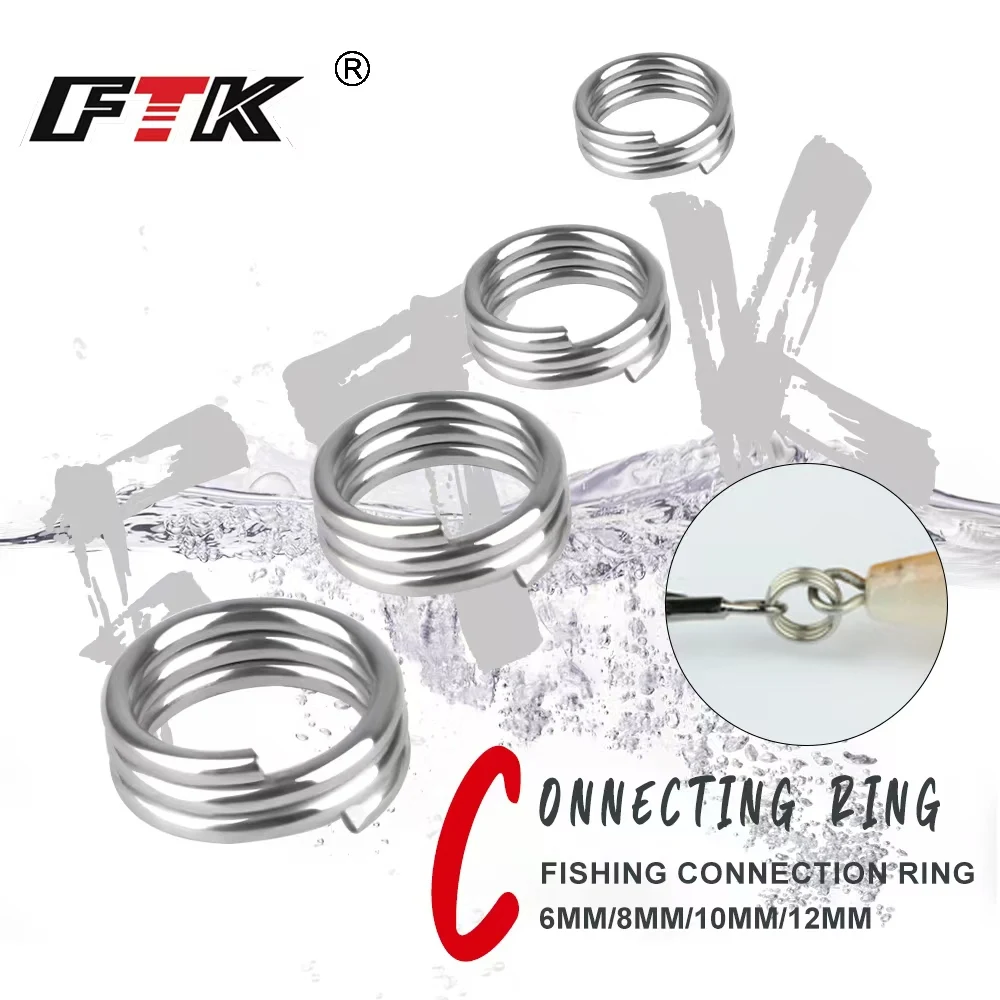 FTK 10 Uds anillos de pesca anillos divididos de acero inoxidable anillo sólido reforzado de alta calidad anillo de conexión de señuelo