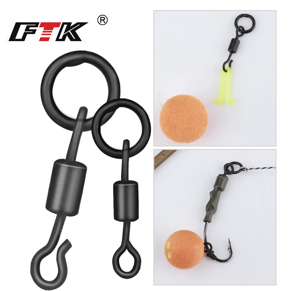 FTK, 10 Uds., broches giratorios para pesca de carpa con anillo sólido, 2 estilos, gancho de pesca de cambio rápido, accesorios de pesca giratorios