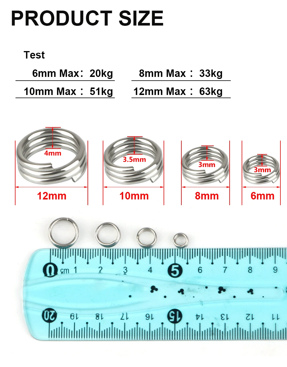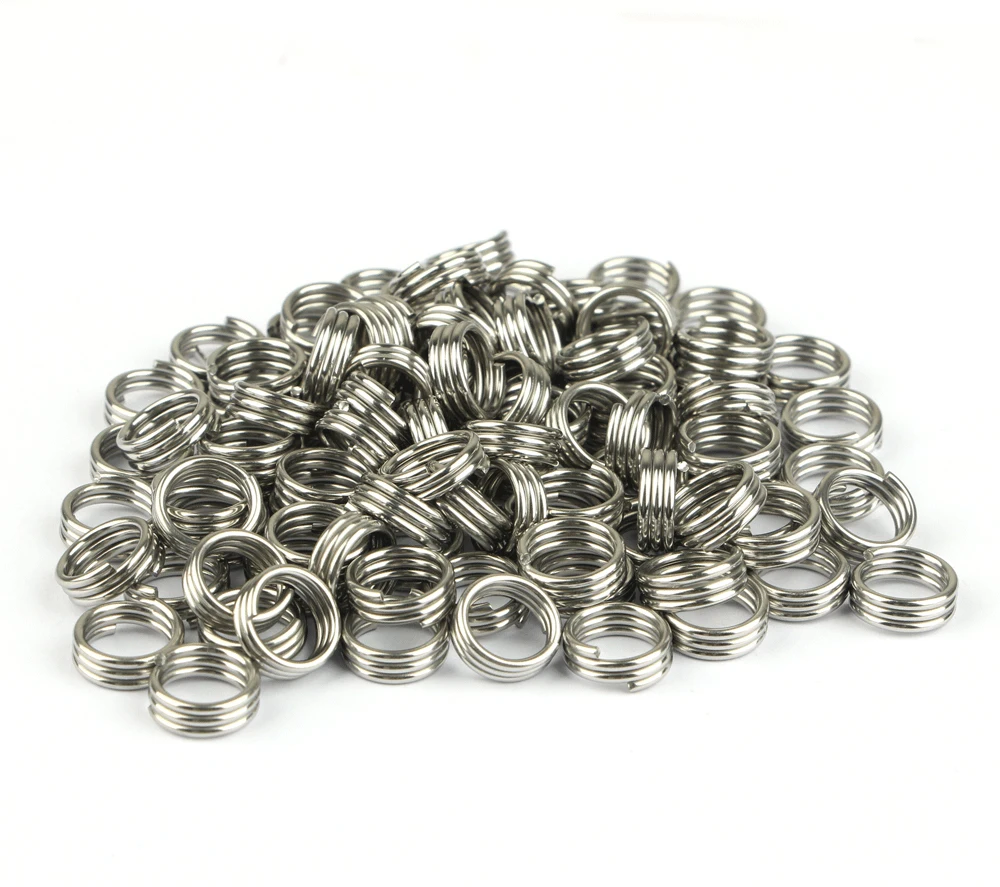 FTK 100 Uds anillos divididos de Pesca 6-12MM manivela cebo duro Snap plata acero inoxidable doble bucle dividido abierto señuelo de Pesca de carpa Pesca