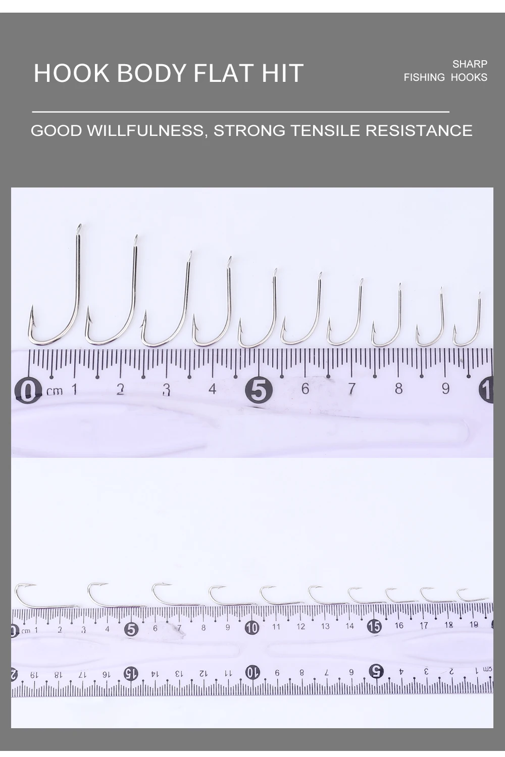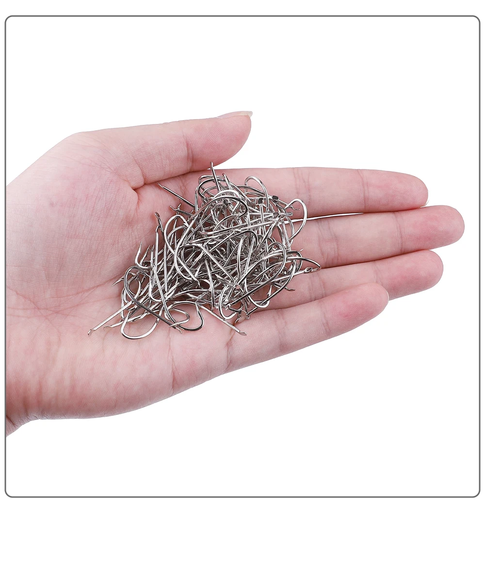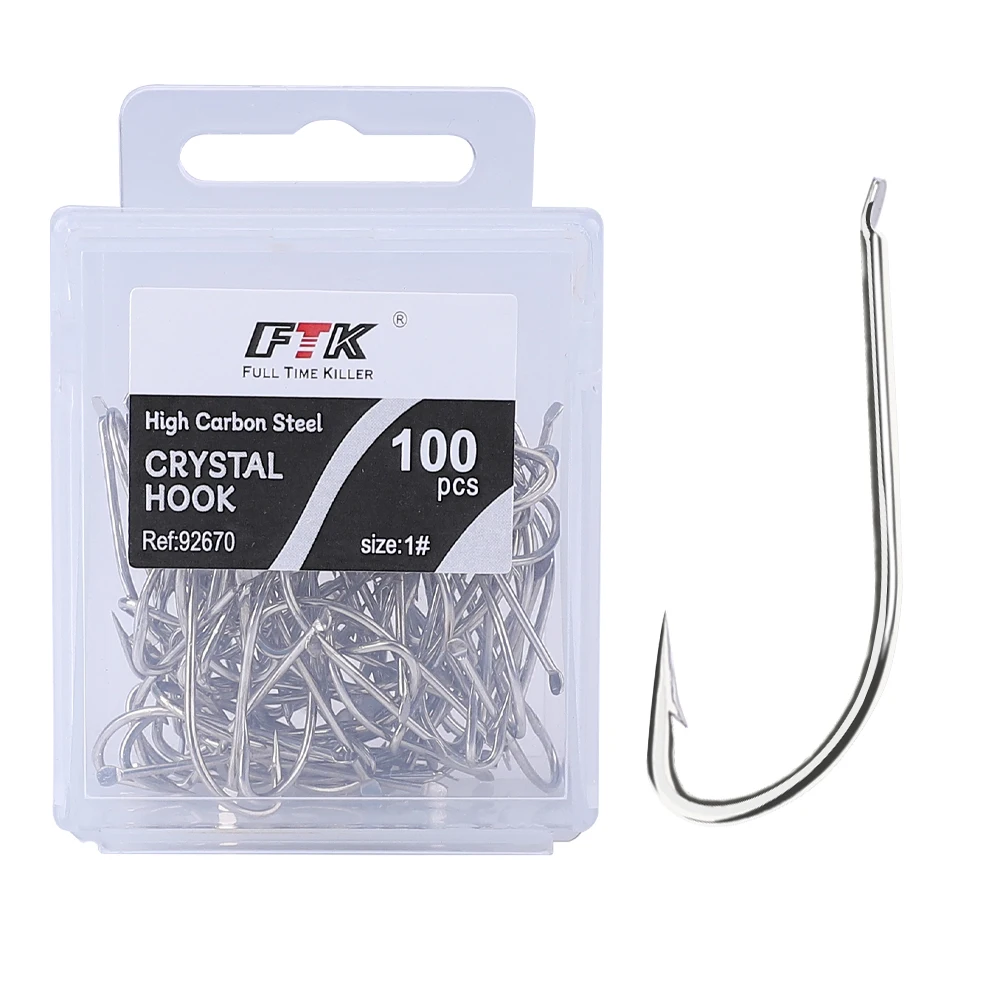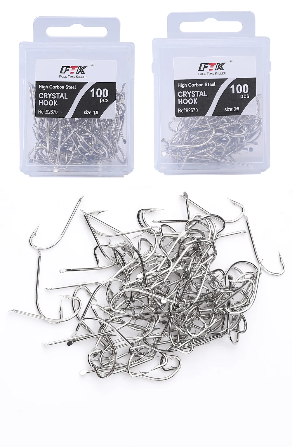 FTK 100 Uds anzuelo de pesca de agua salada acero alto en carbono blanco gancho de gusano individual manivela anzuelo de púas para aparejos de pesca de lubina