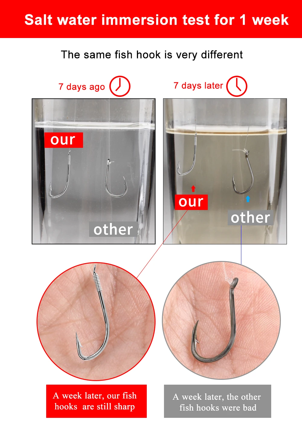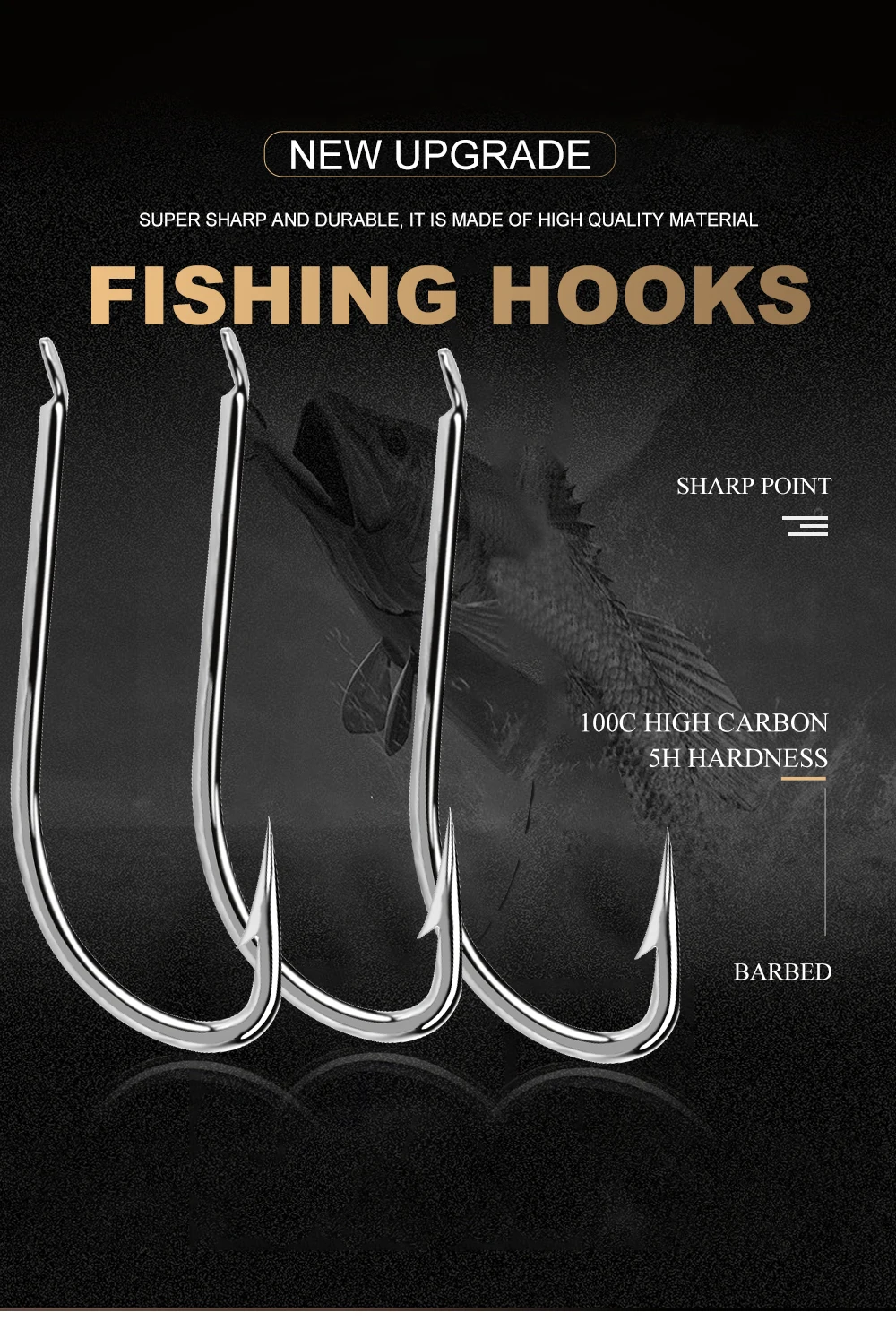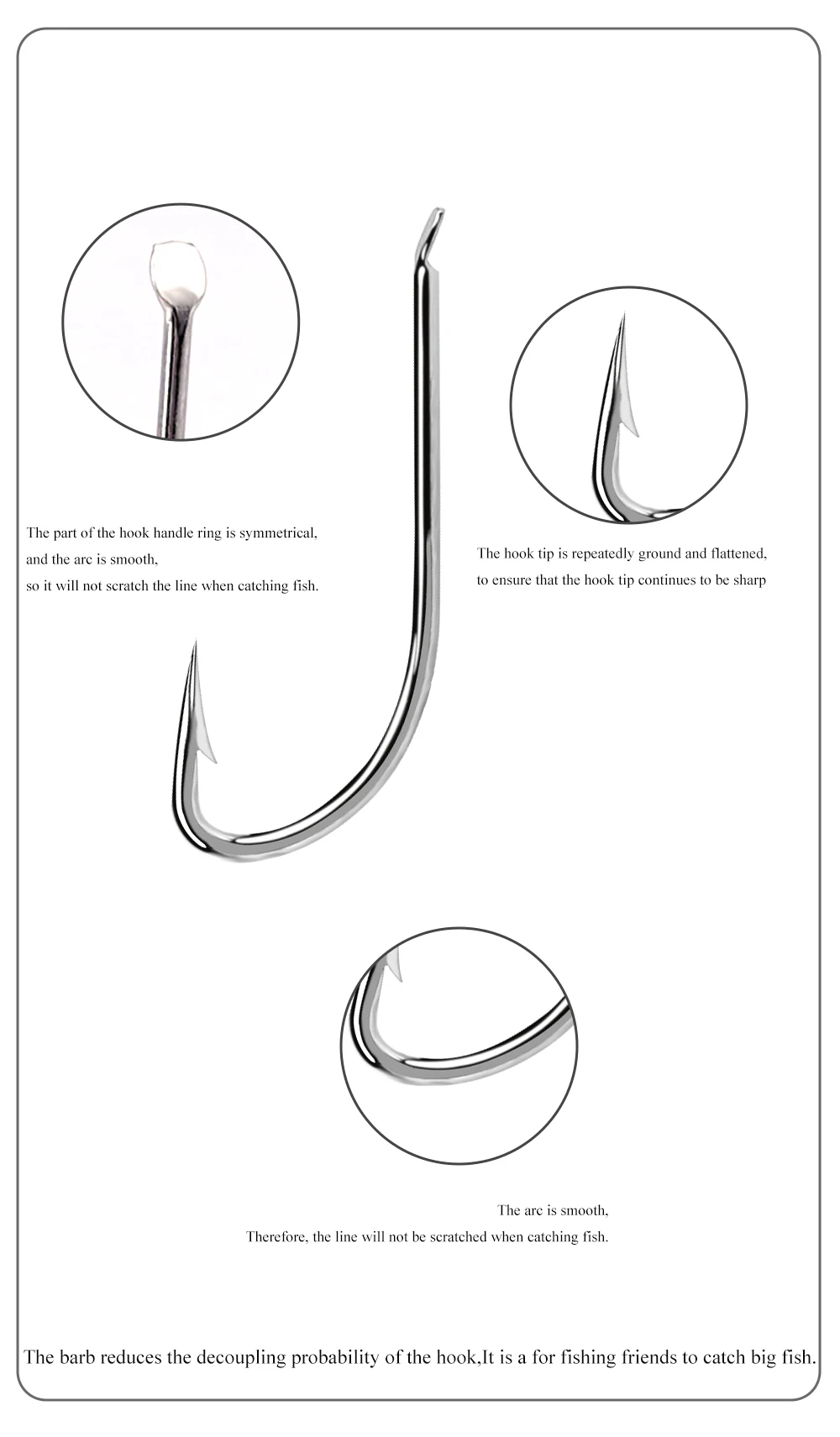 FTK 100 Uds anzuelo de pesca de agua salada acero alto en carbono blanco gancho de gusano individual manivela anzuelo de púas para aparejos de pesca de lubina