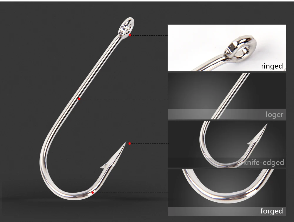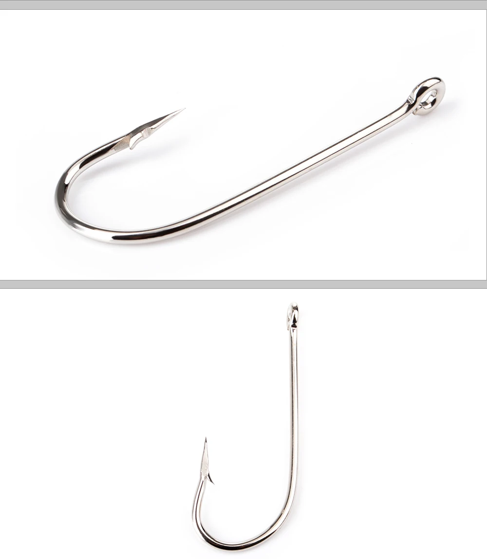 FTK 100 Uds. Anzuelo de púas afiladas de acero de alto carbono, anzuelos de pesca en el mar, anzuelo Kirby anillado de mango largo, accesorios de pesca de agua salada
