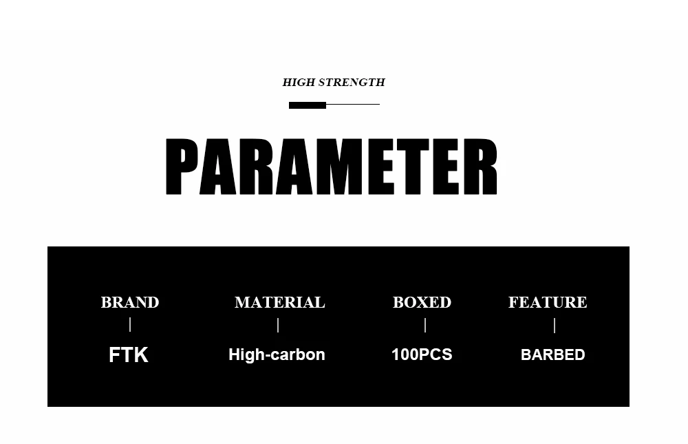 FTK 100 unids/caja anzuelos de pesca 1 # -10 # Anzuelo de cebo estrecho compensado con púas afiladas de acero rico en carbono, accesorios de pesca