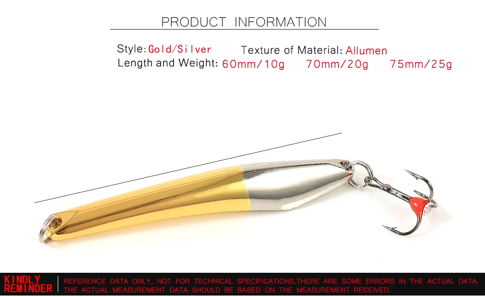 FTK 10g 20g 25g señuelo de pesca en hielo de Metal cuchara 60mm 70mm 75mm cebo duro de invierno Artificial con anzuelo triple Wobbler