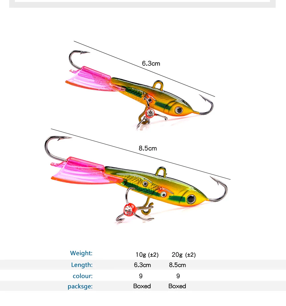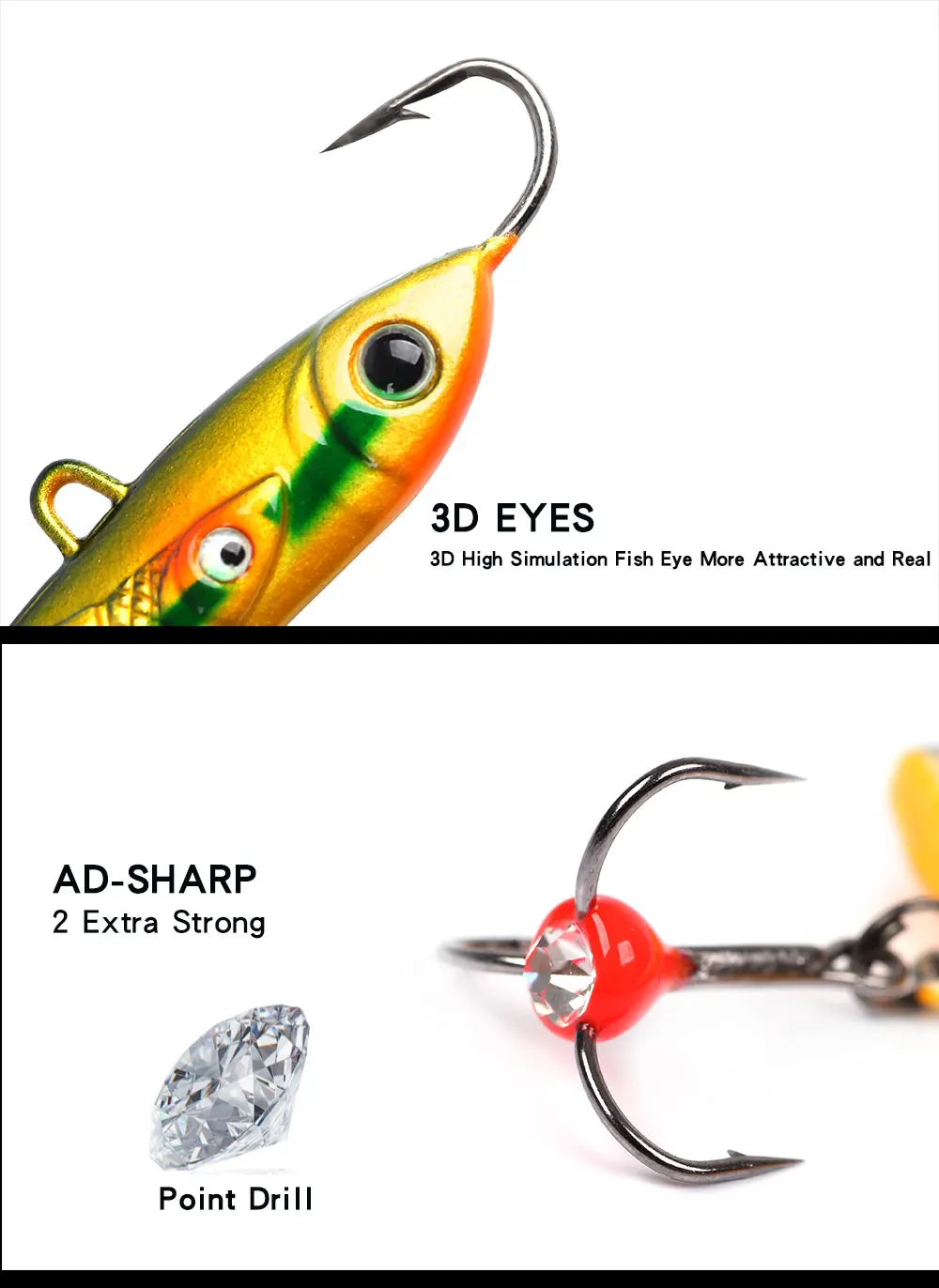 FTK 10g 20g equilibrio de señuelo de pesca de invierno ojos 3D plantilla de Metal hielo duro cebo Artificial hundimiento Minnow Swimbait Wobblers Pike