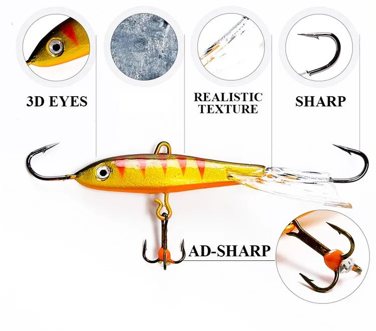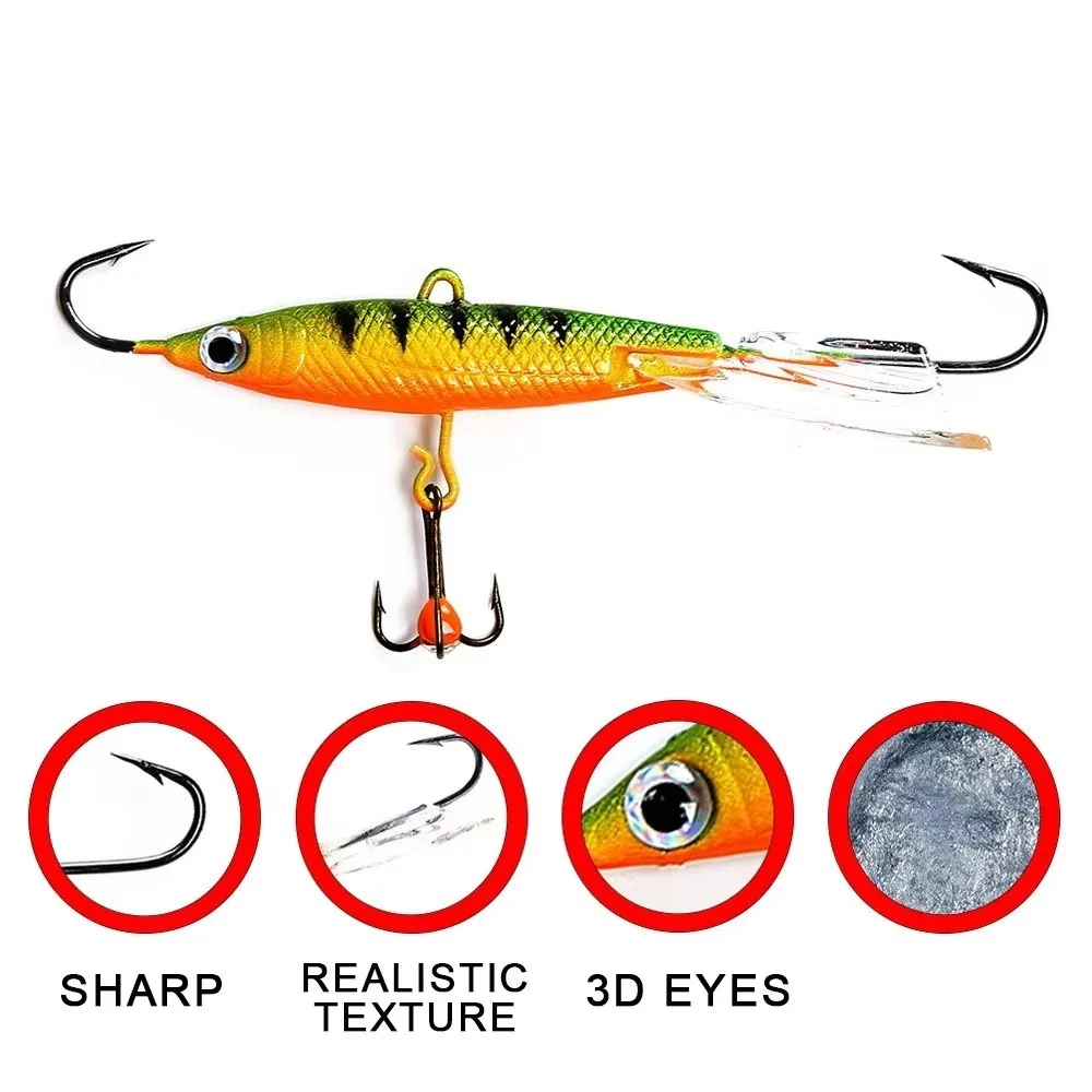 FTK 12g 15g equilibradores de pesca de invierno señuelo duro 3D Eye Jig hundimiento Minnow Señuelos de pesca en hielo Wobblers