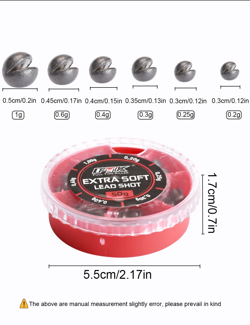 FTK 143 unids/caja equipo de pesca de plomo para morder 0,2g-1g accesorios de pesca para morder plomo abierto de varios tamaños colgante de plomo pesca en mar