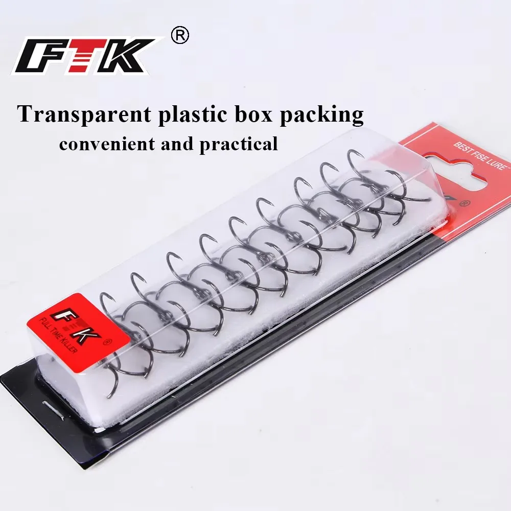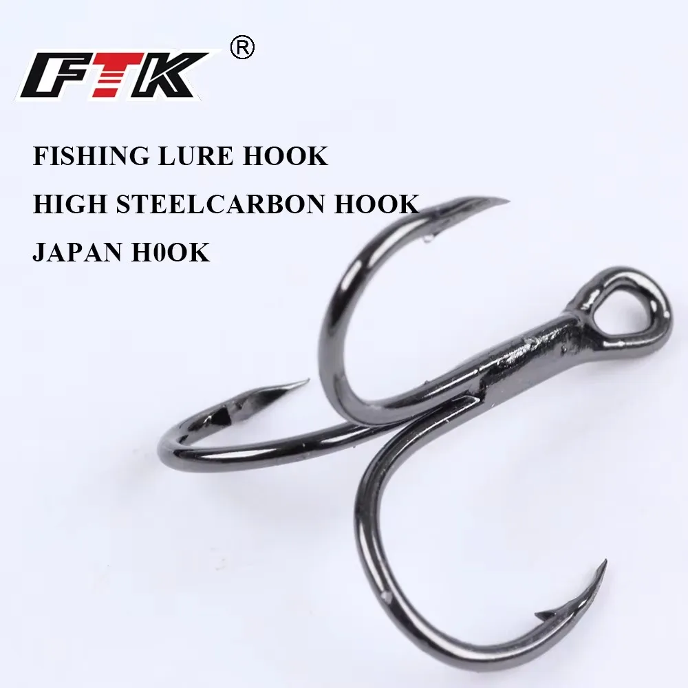 FTK 15-20 unids/lote anzuelos de pesca triples 2 # 4 # 6 # 8 # 10 # Anzuelo de pesca de acero rico en carbono, anzuelos volcados, herramientas de aparejos de pesca de lubina