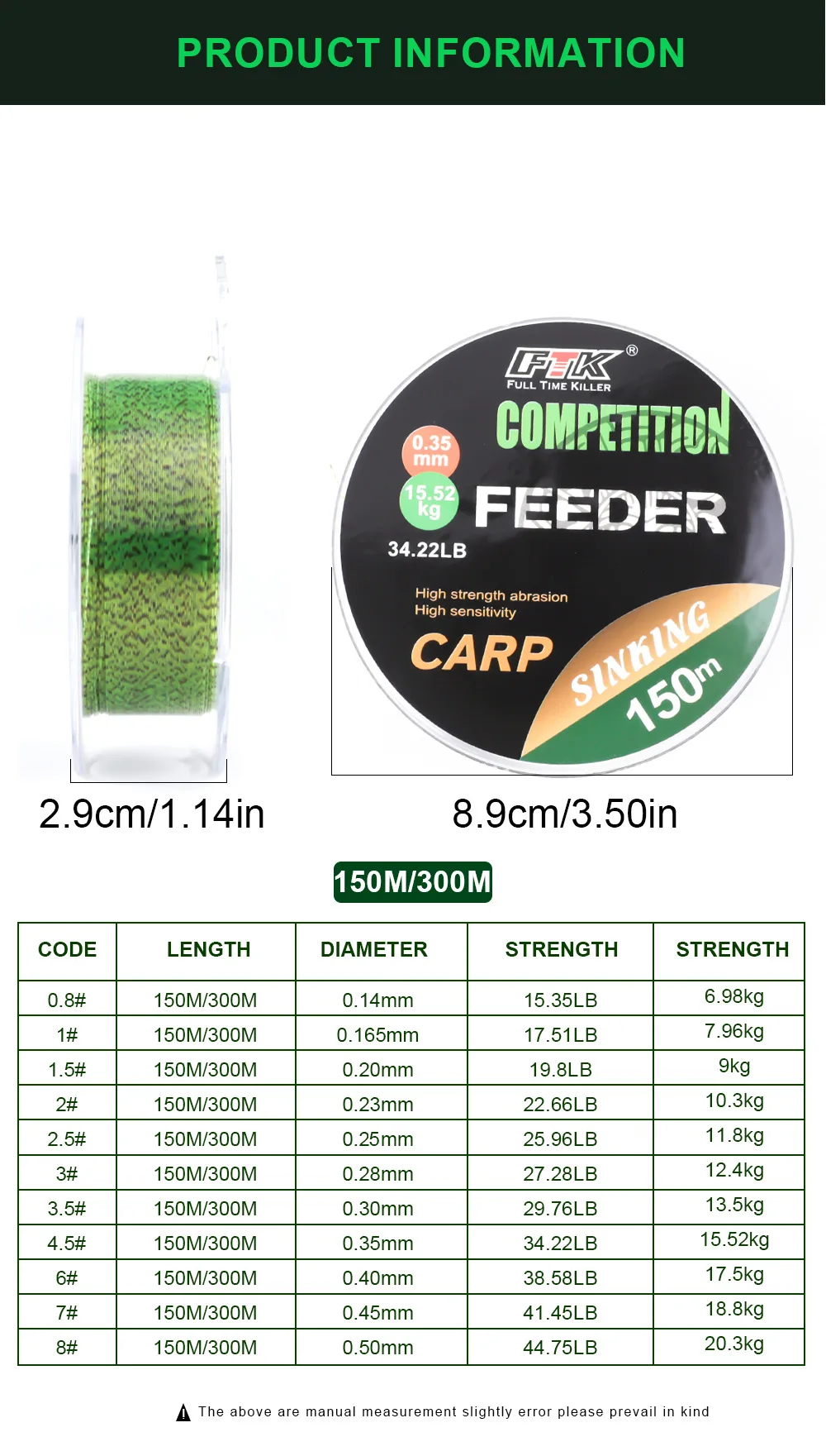 FTK 150M 300M hilo de pescar de nailon súper fuerte 0,14 MM-0,50 MM monofilamento con revestimiento de fluorocarbono línea de pesca de carpa 15.35LB-44.75LB - imagen 5
