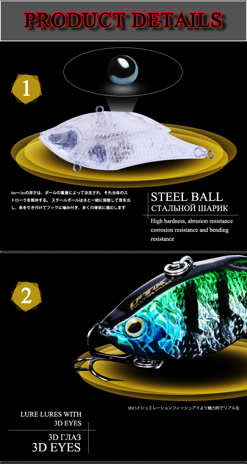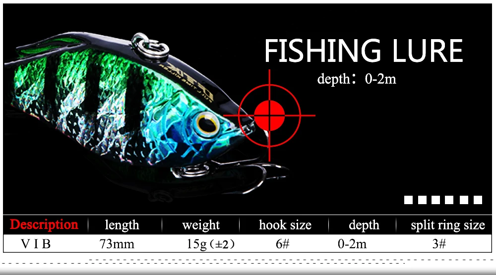 FTK 15g VIB señuelo de pesca duro Minnow 7,3 cm Swimbait Wobblers vibración Trolling Jerkbait cebo de pesca Artificial Lucio
