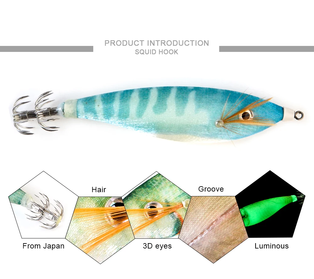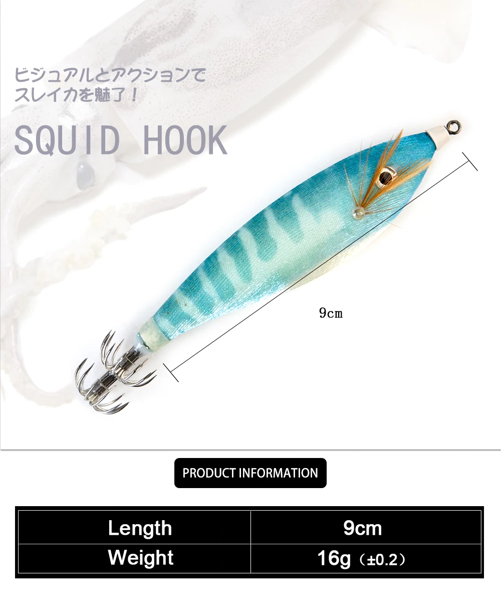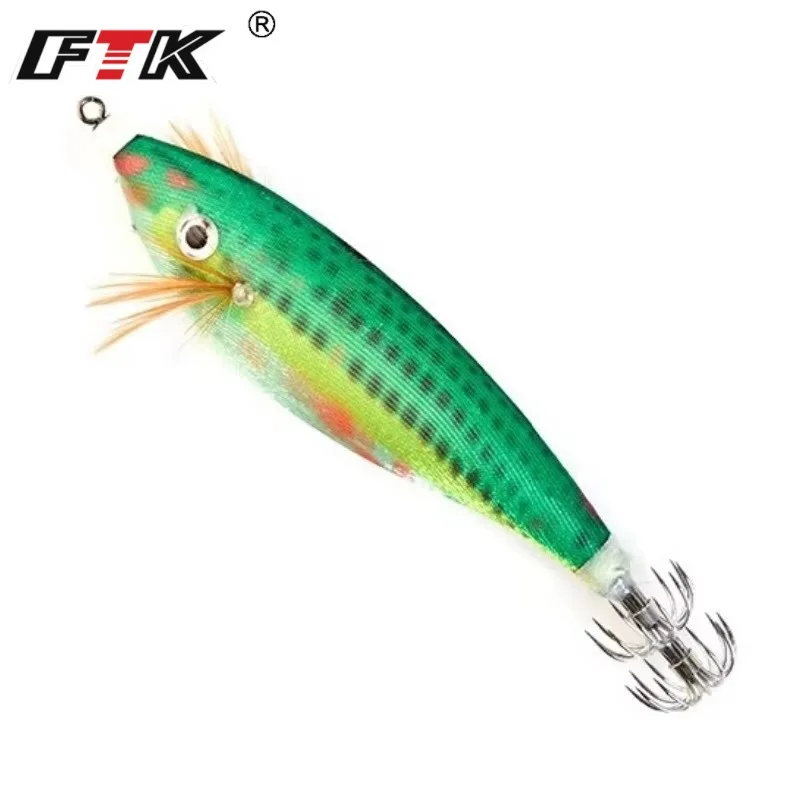 FTK 16g plantilla de calamar señuelo de pesca de mar pulpo luminoso anzuelo de calamar señuelo de camarón cebo Artificial duro ojos 3D