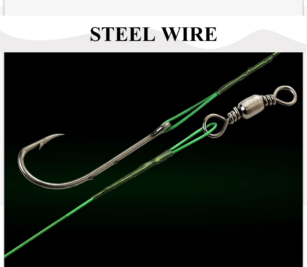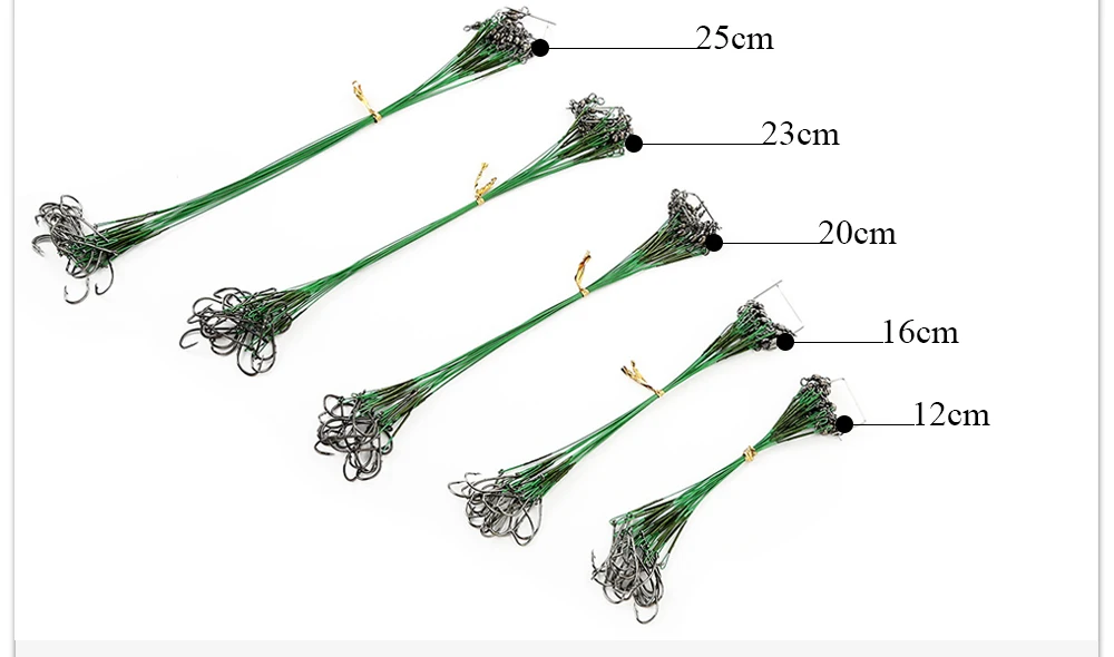 FTK 20 piezas correas de alambre de acero antimordeduras para pescar 12cm-25cm 20LB-80LB línea de pesca líder con anzuelo giratorio Pike Bass