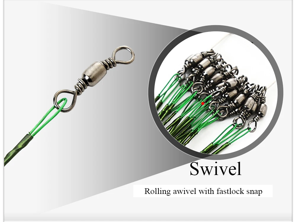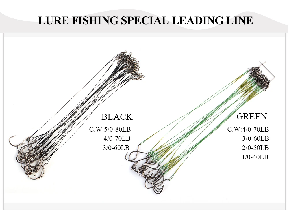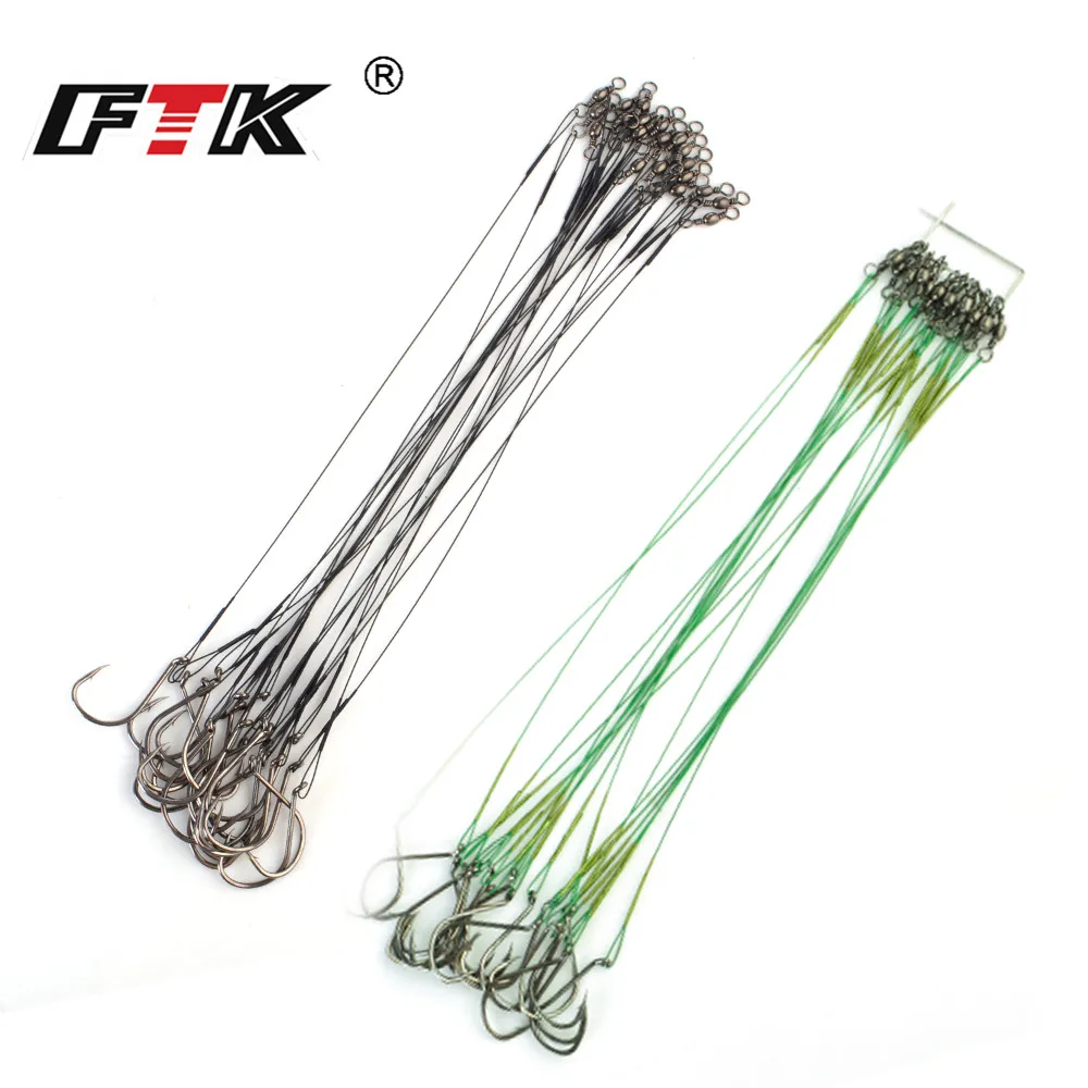 FTK 20 piezas-sedal de pesca 1/0 #-5/0 # 40LB-80LB, líder de alambre de acero con eslabones giratorios, doble bloqueo, anzuelos de pesca anticebo