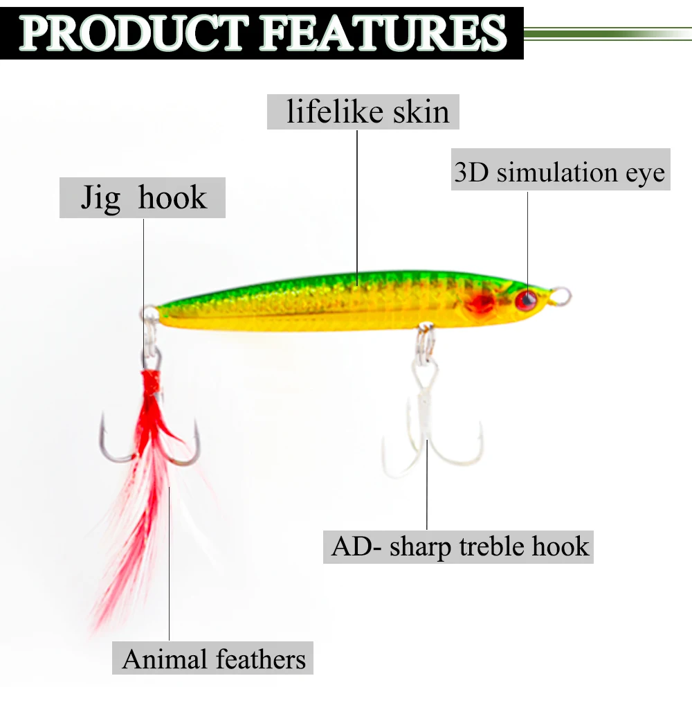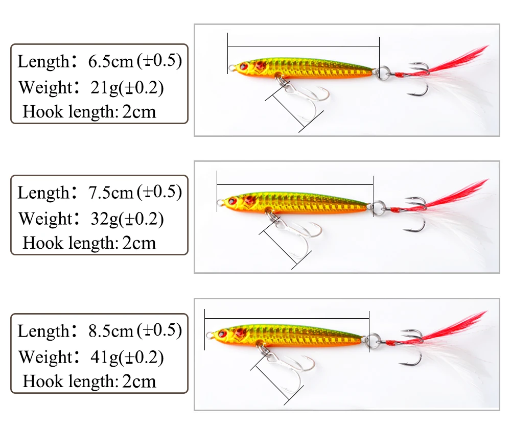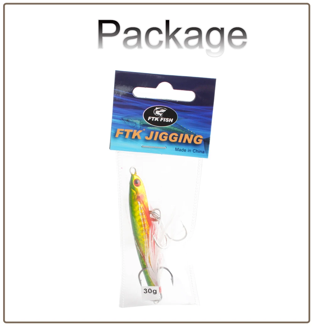 FTK 20g 30g 40g Señuelos de Pesca de Jigging de Metal 6,5 cm-8,5 cm cebo Artificial duro pesca en el mar Micro plantilla con anzuelo triple