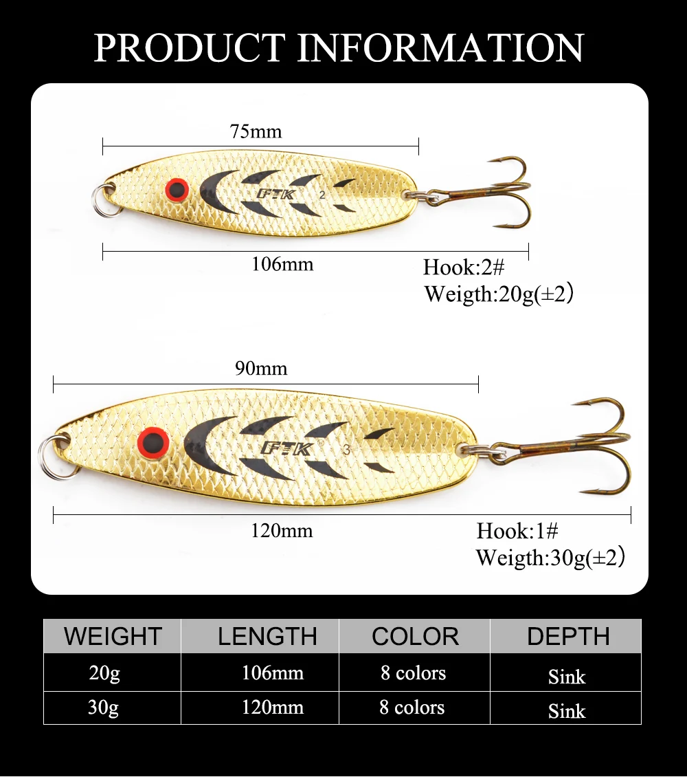 FTK 20g/30g Señuelos de pesca de carpa de fundición larga Jig cebos aparejos Wobblers Isca cebo Artificial Spinner cuchara Lucio Señuelos de pesca