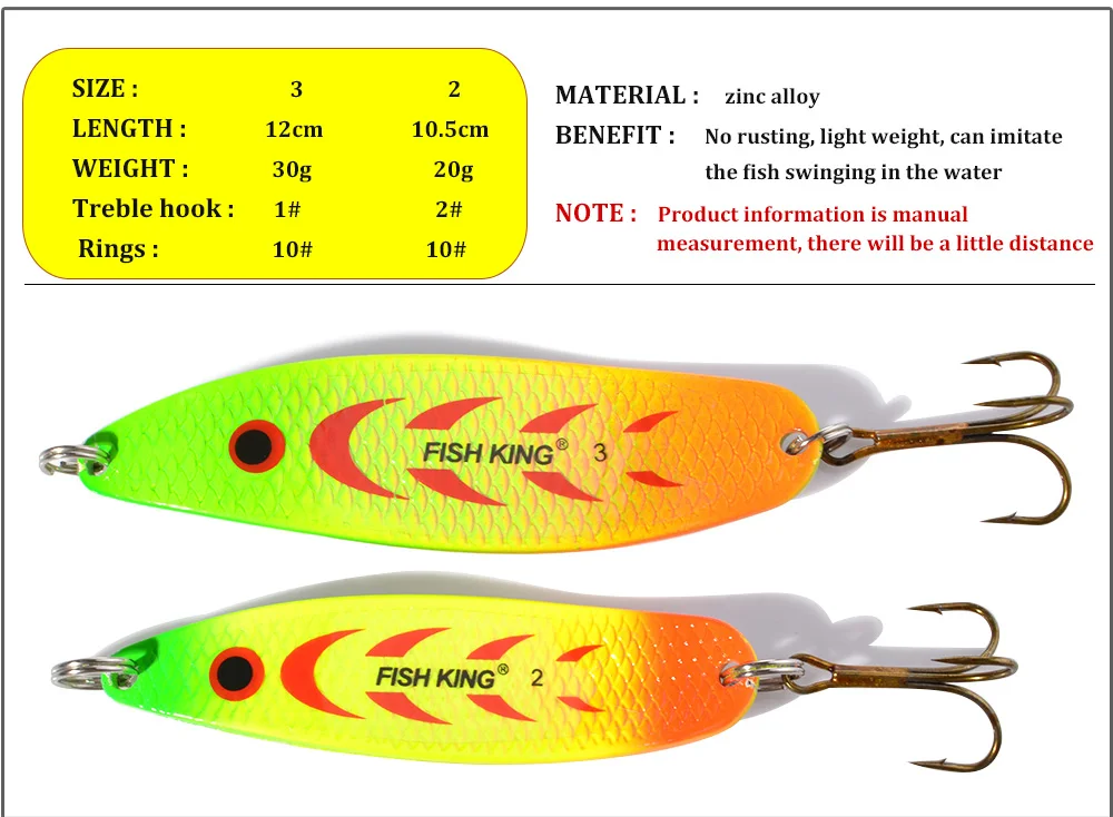 FTK 20g 30g Spinner cuchara cebo señuelo de pesca de Metal cebos artificiales señuelos duros para Lucio con anzuelo triple