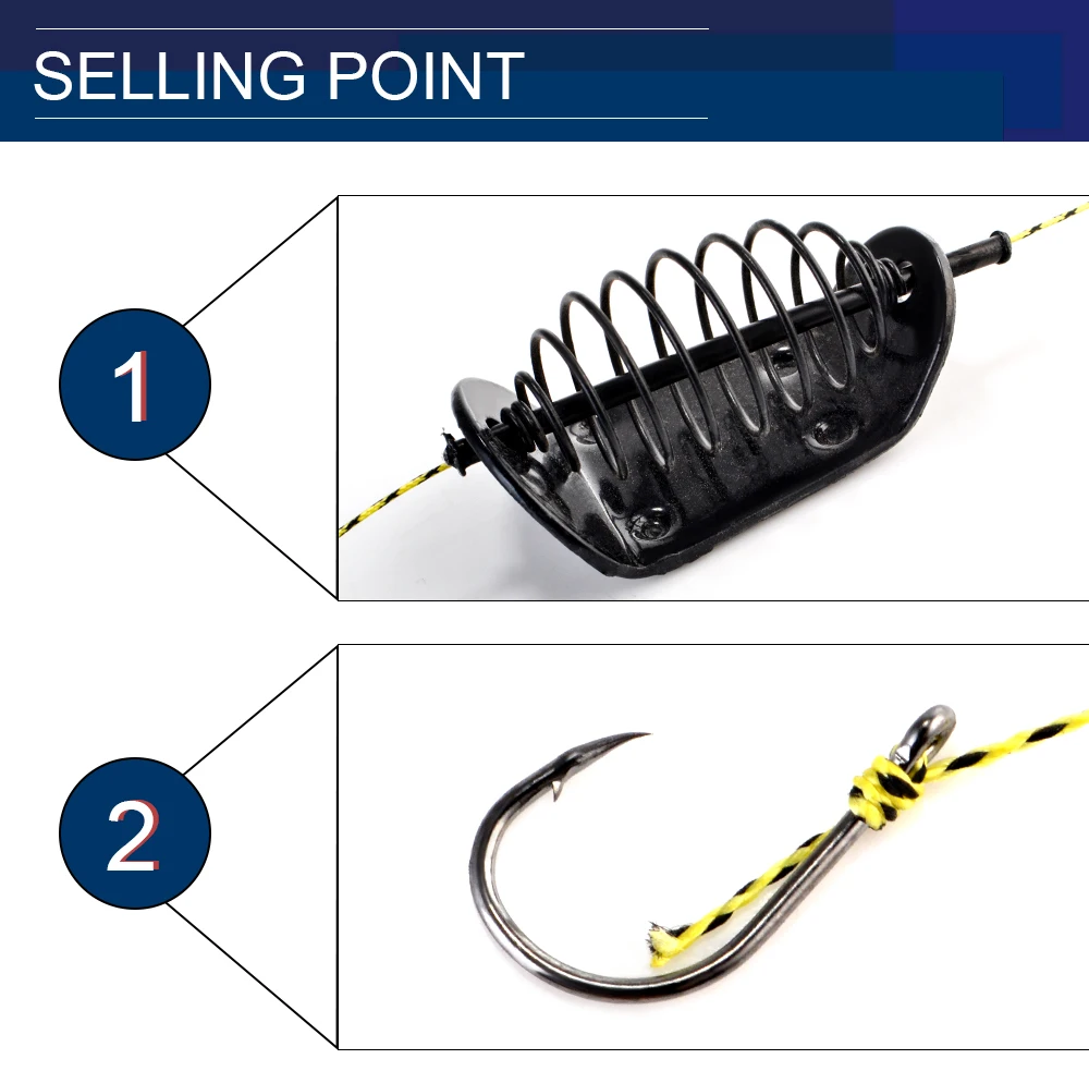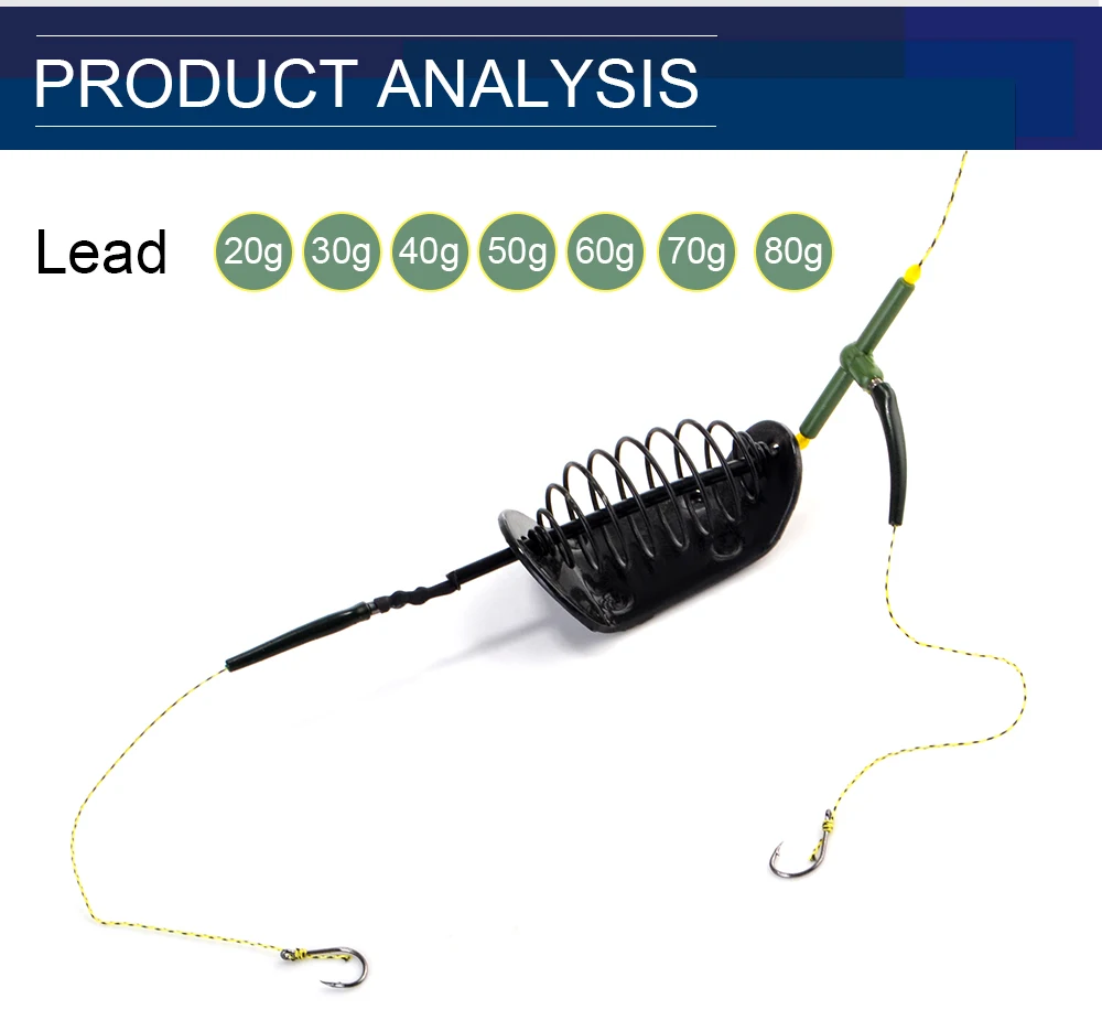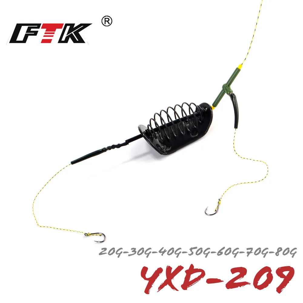 FTK, 20g-80g, jaula de cebo de pesca de carpa de Metal, alimentador europeo, grupo de pesca con púas, soporte para cebo de carpa, anzuelo, accesorios de pesca