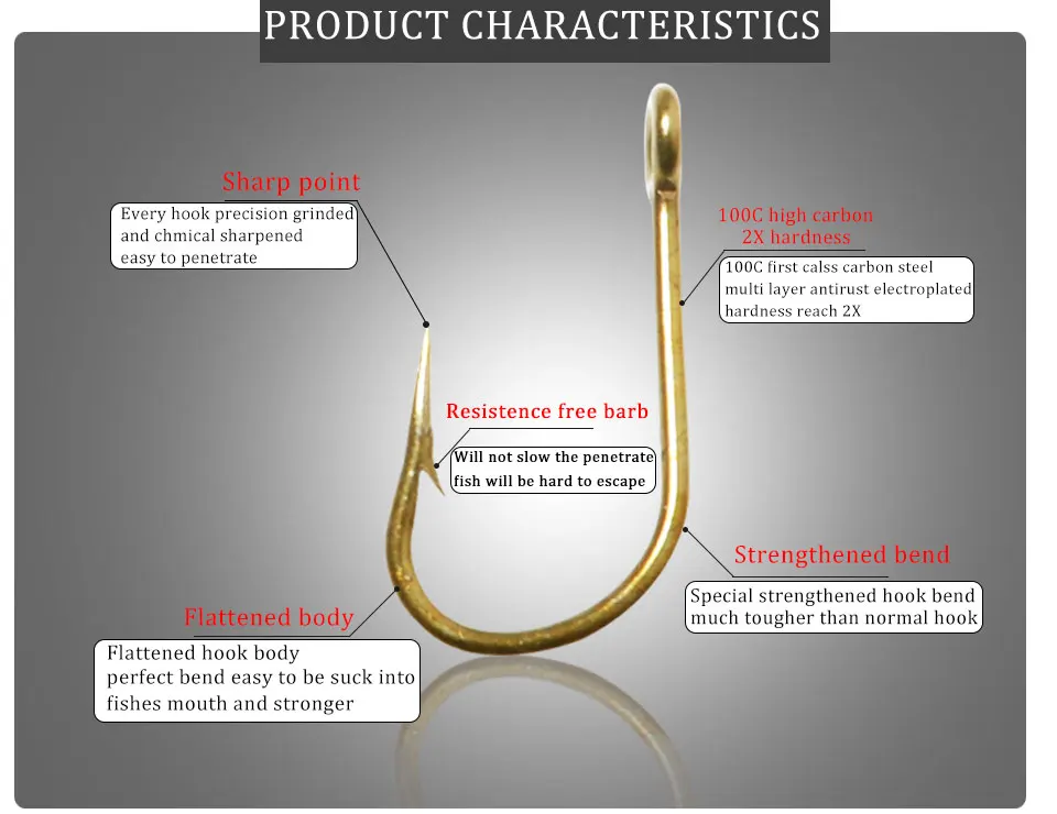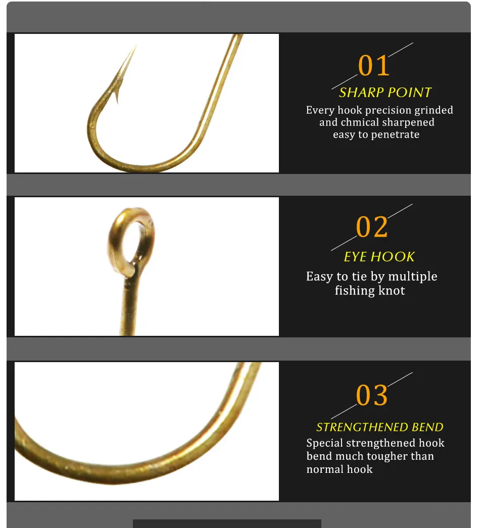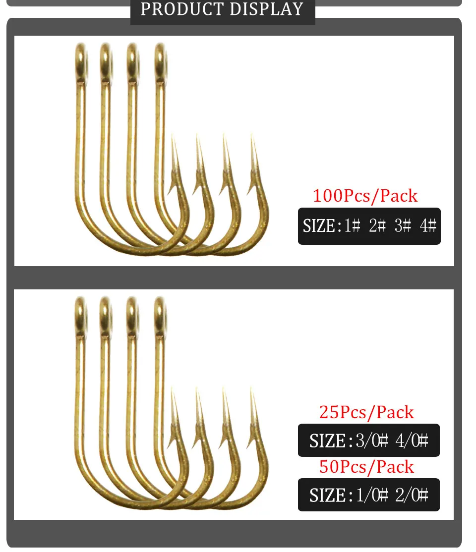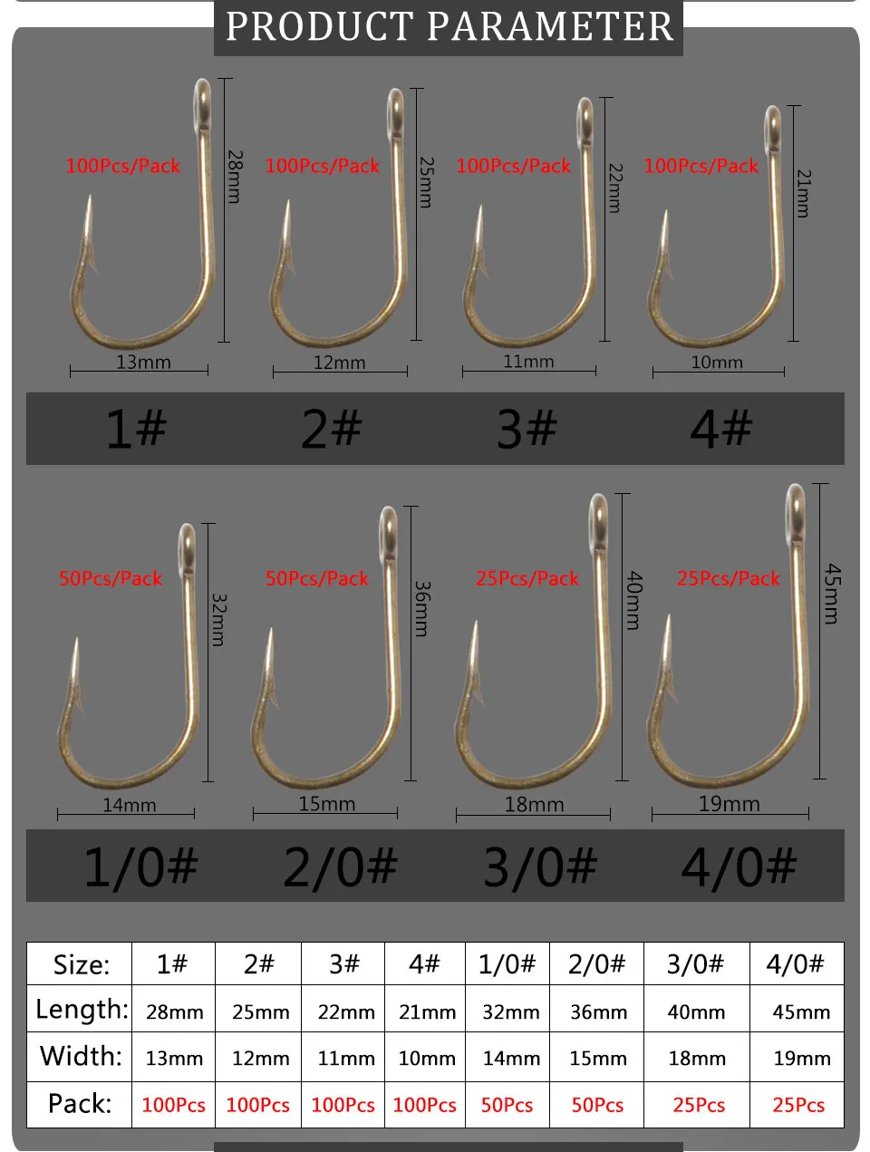 FTK 25-100PCS Anzuelos de pesca de acero rico en carbono con anillo 3/0 # -4 # Anzuelos de púas Accesorios de pesca de carpa