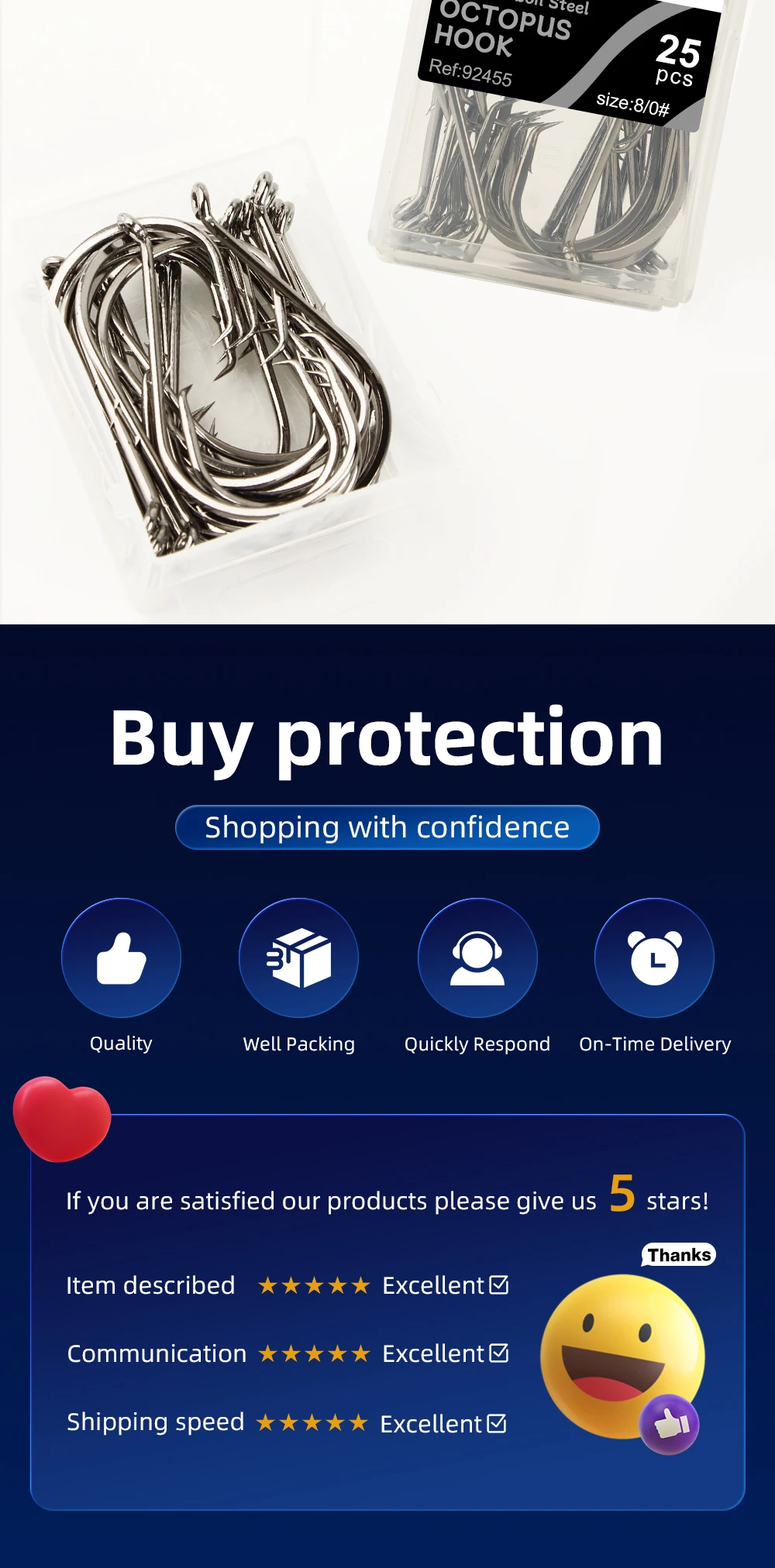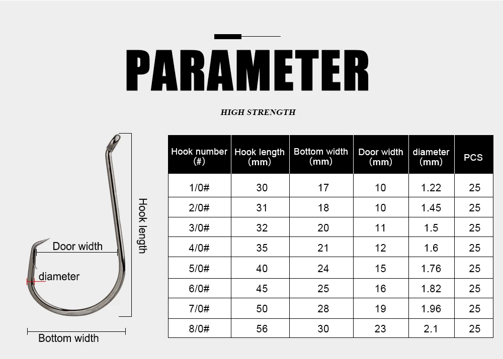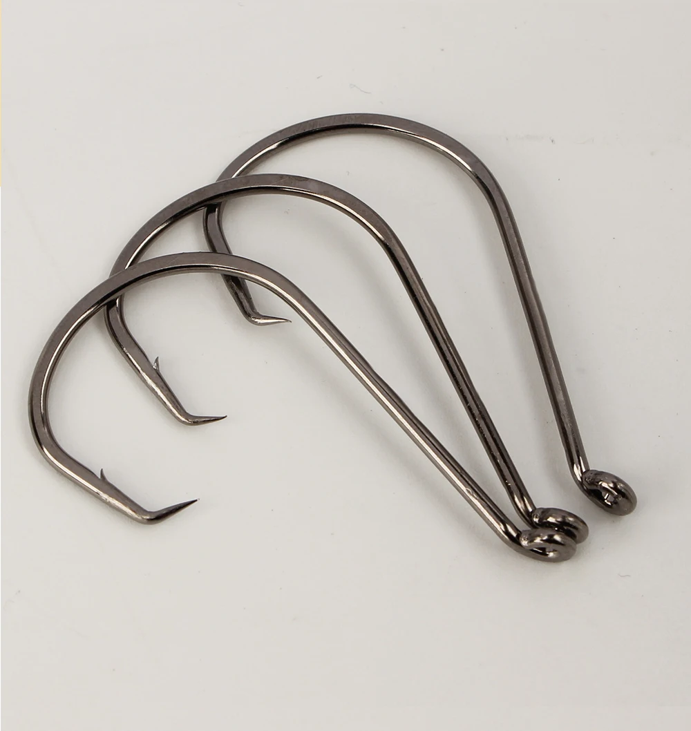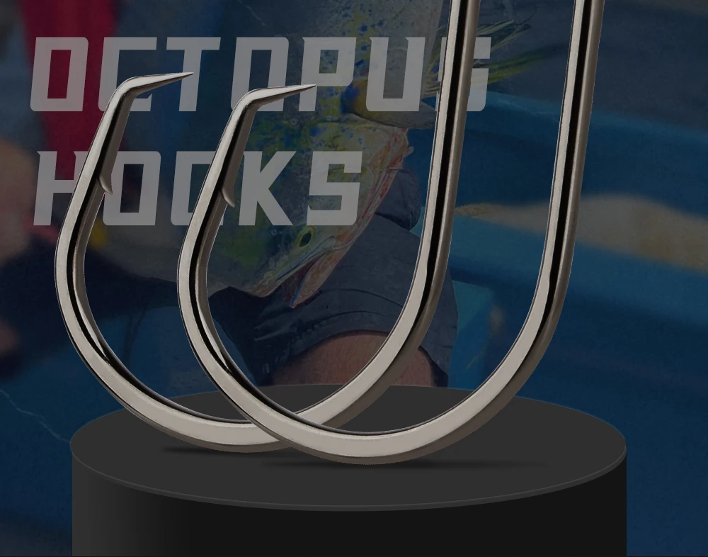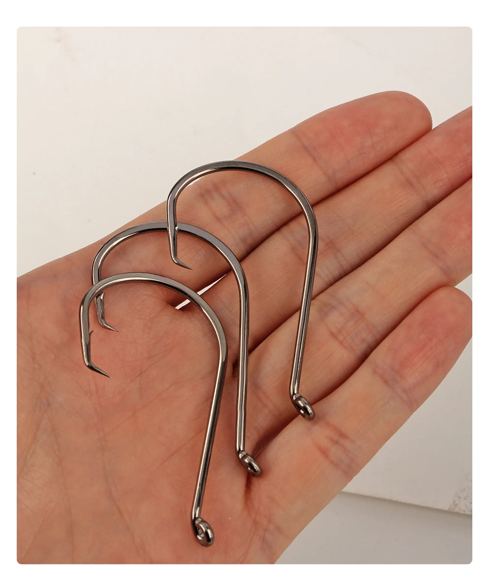 FTK 25-50PCS Baitholder Anzuelo de pesca de acero rico en carbono 1/0 ~ 8/0 # Gancho de pulpo con ojo, gancho de mar de mango largo con púas