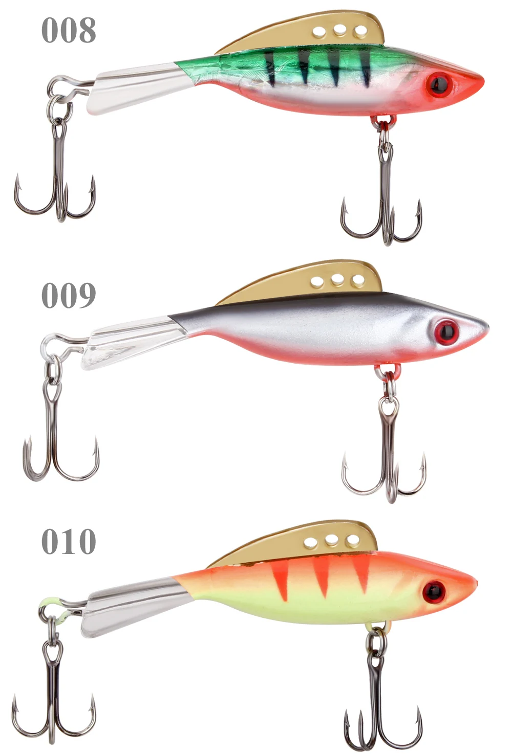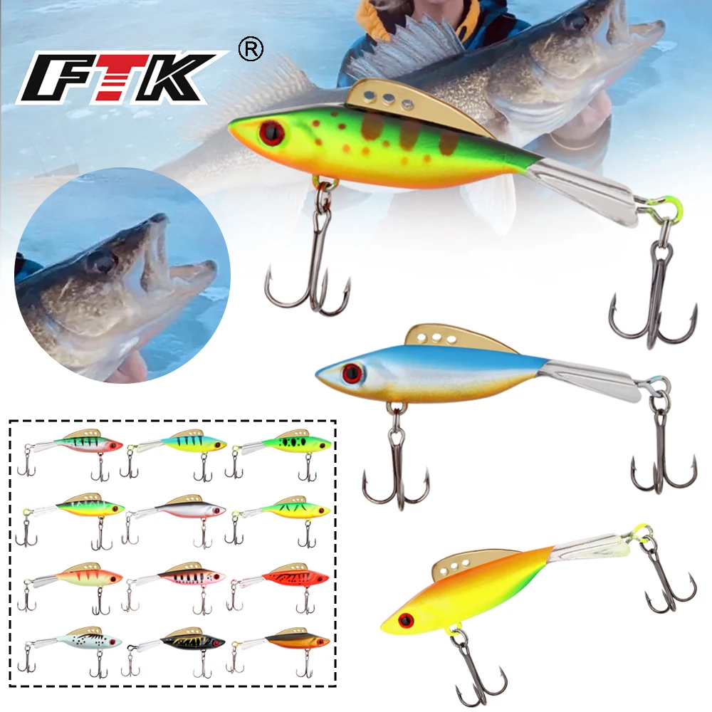 FTK 4g 8g 10g 17g balanceador Señuelos de pesca en hielo 38mm-65mm ojos 3D pesca de invierno cebo Artificial Vib aparejos de pesca