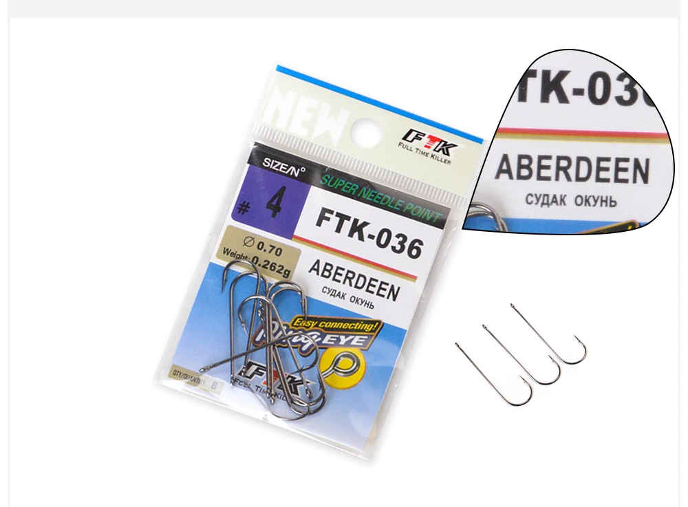 FTK 5-9pcs ABERDEEN Anzuelo de pesca con anillo 4/0-10 # Anzuelo de púas de acero rico en carbono, anzuelo de pesca de carpa, anzuelo de gusano