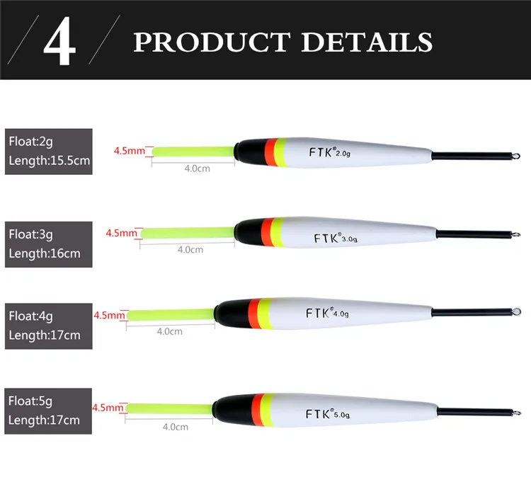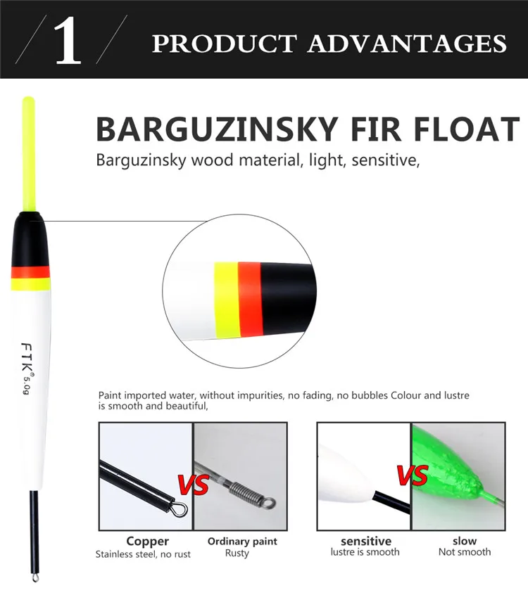 FTK 5 uds 2g 3g 4g 5g Barguzinsky Fir Bobber flotador de pesca de carpa 15,5-17cm boya flotante de palo ligero para aparejos de pesca