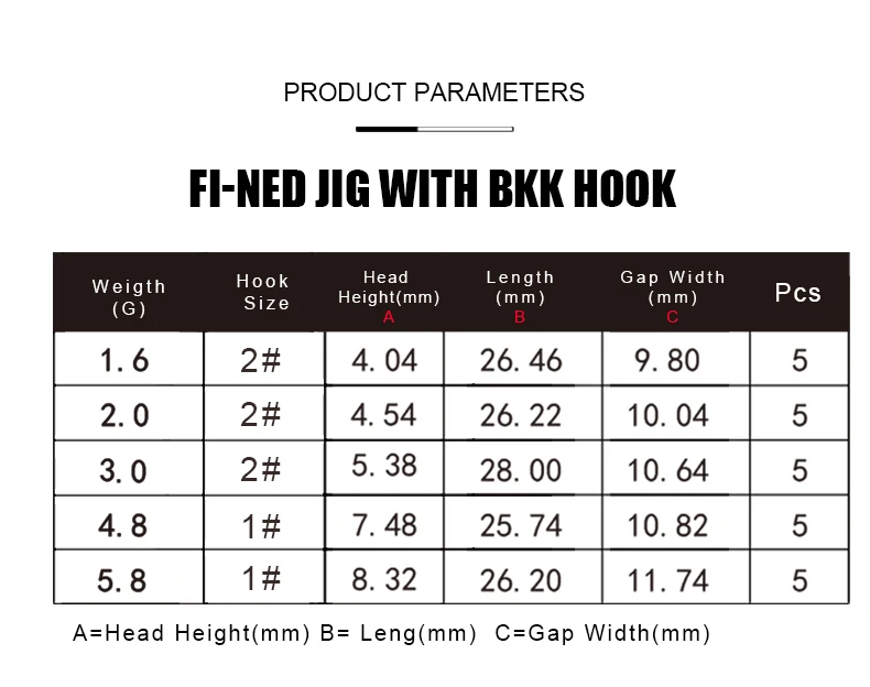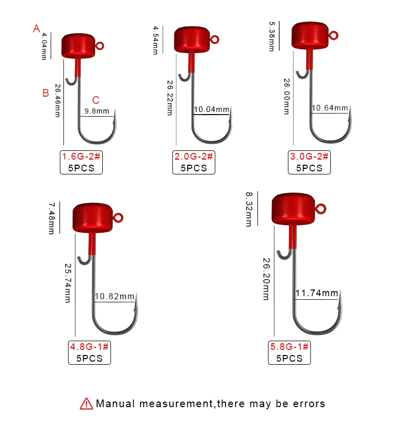 FTK 5 uds Ned anzuelo con cabeza de anzuelo 1,6g 2g 3g 4,8g 5,8g anzuelo de pesca Jigging lubina Lucio gusano suave aparejos de señuelo de pesca