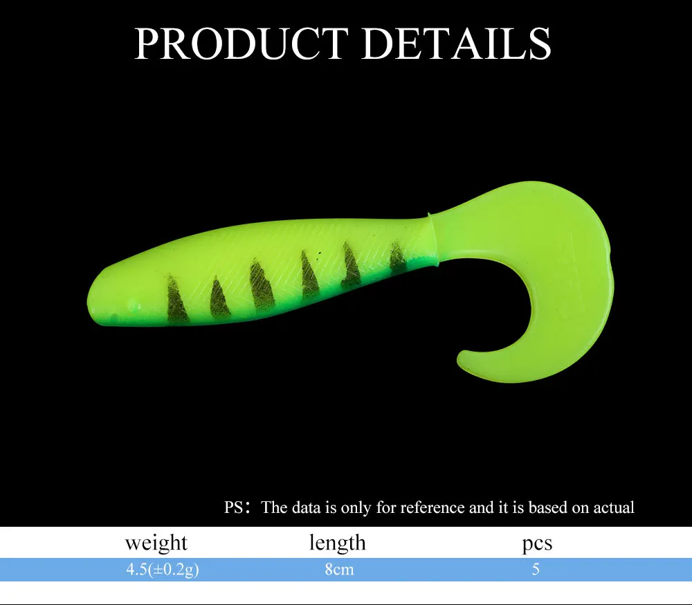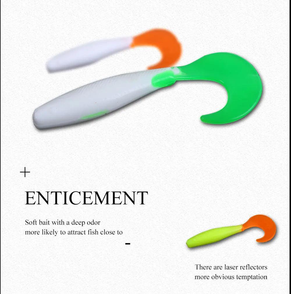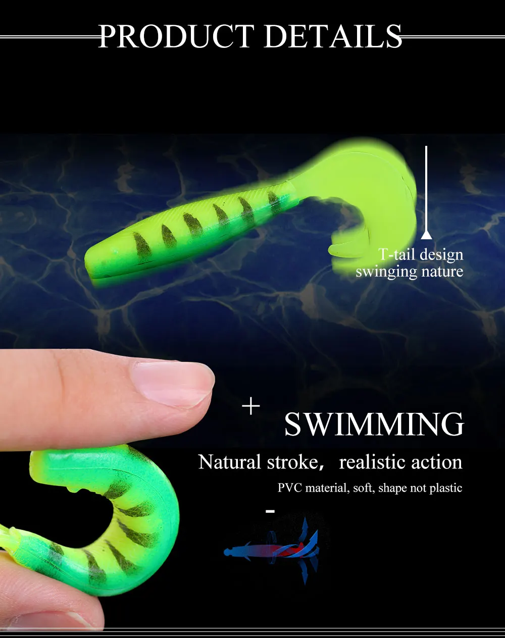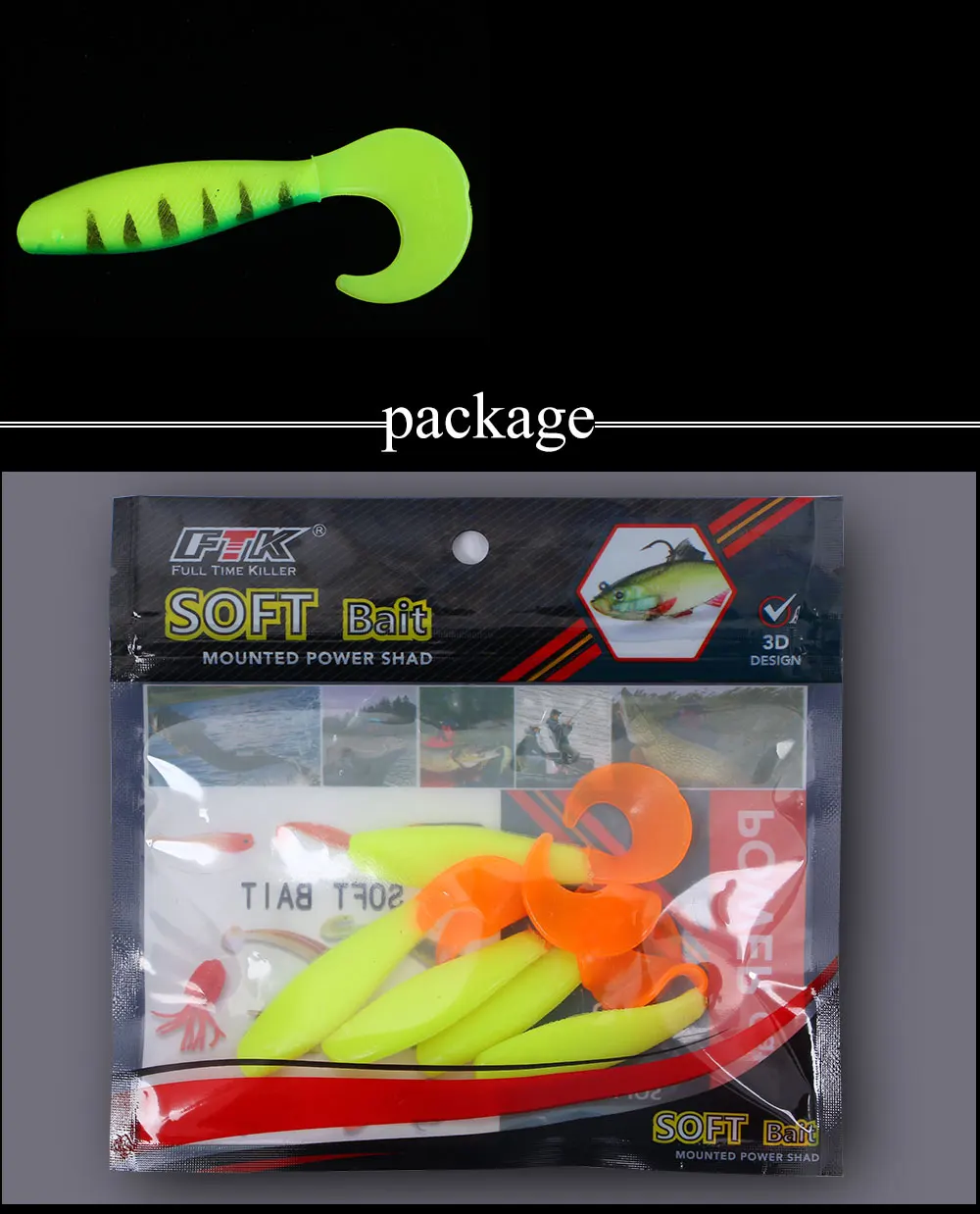 FTK 5 uds señuelo suave Señuelos de Pesca cebos de natación señuelo de Jigging lubina fácil Artificial Popper señuelo Soft Wobblers 3D sacudir cola de pez T