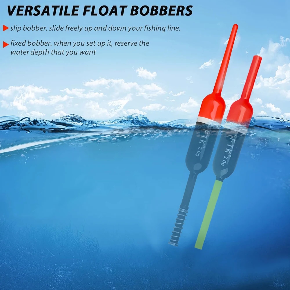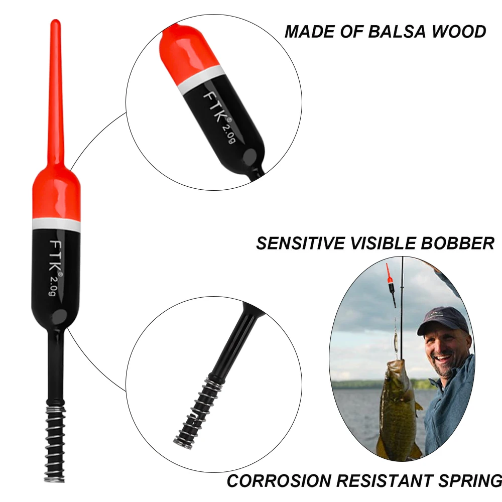 FTK 5 unids/pack Balsa flotadores de pesca de madera Bobbers boyas verticales de resorte Bobber antideslizante para tipo panfish bagre Walleye Bass