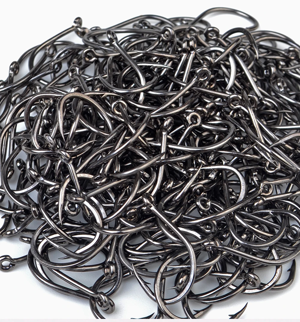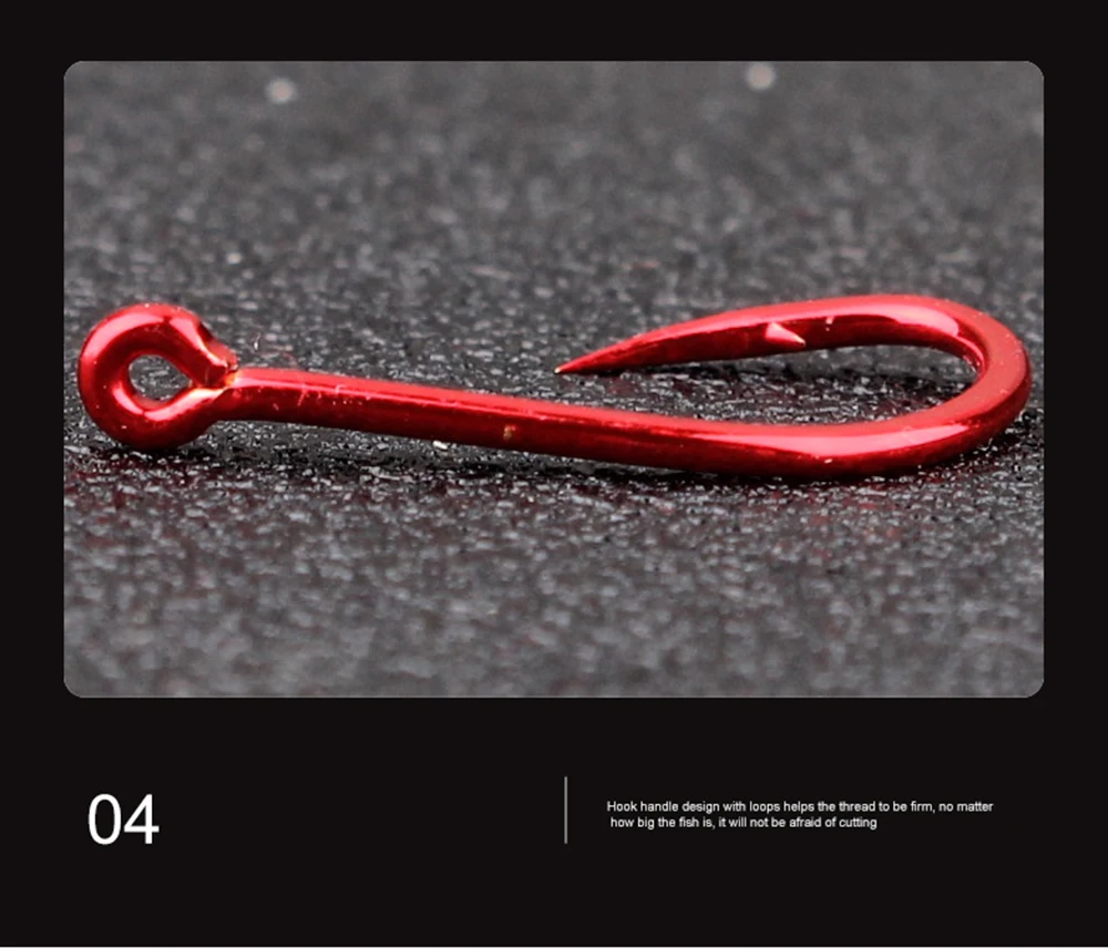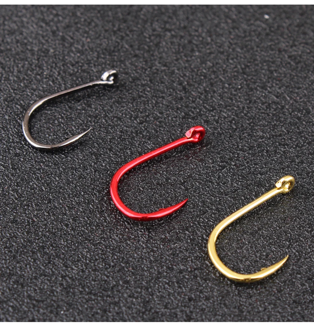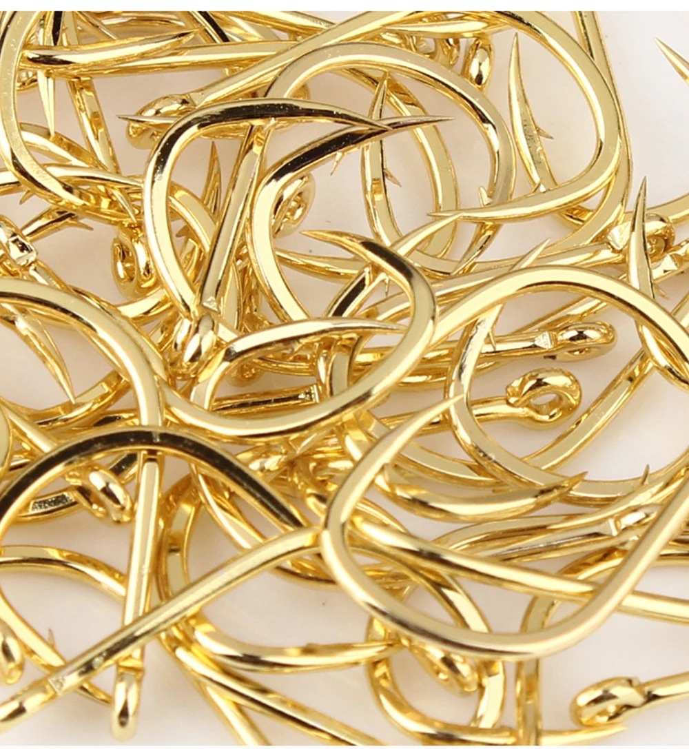 FTK 50-100 piezas de anzuelo de pesca dorado de acero rico en carbono 1 # -12 # Anzuelo de púas con anzuelos rojos con ojo anillado para aparejos de pesca de carpa