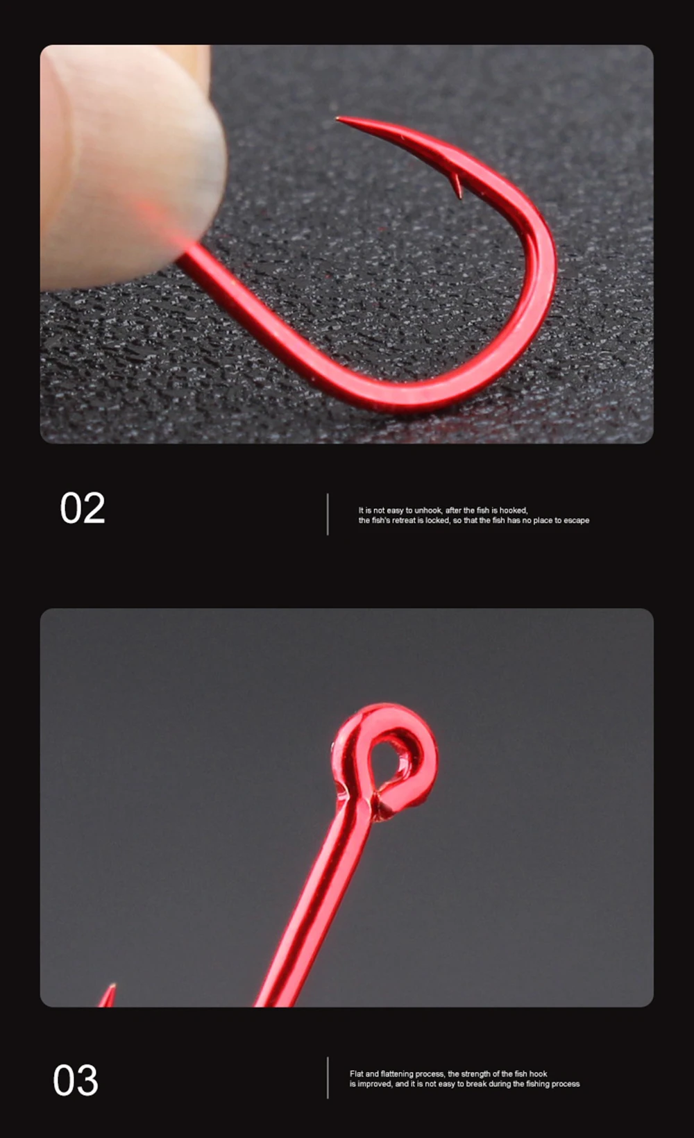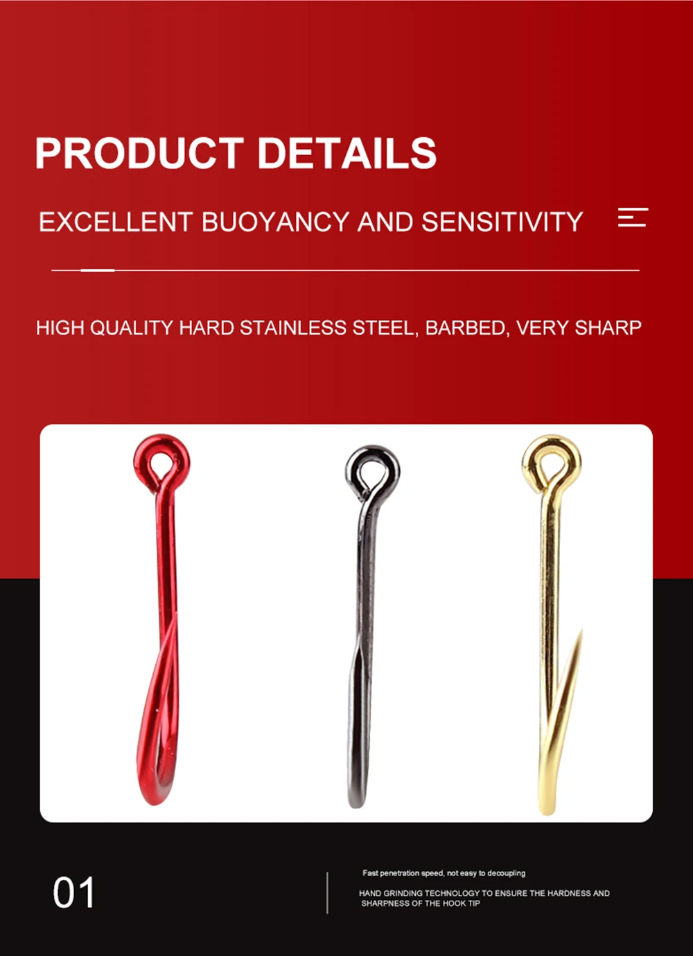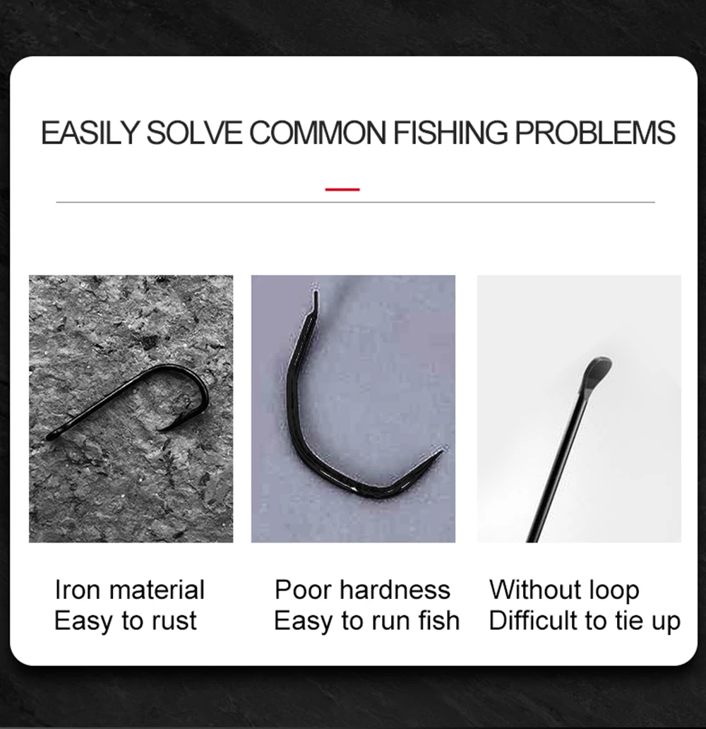 FTK 50-100 piezas de anzuelo de pesca dorado de acero rico en carbono 1 # -12 # Anzuelo de púas con anzuelos rojos con ojo anillado para aparejos de pesca de carpa