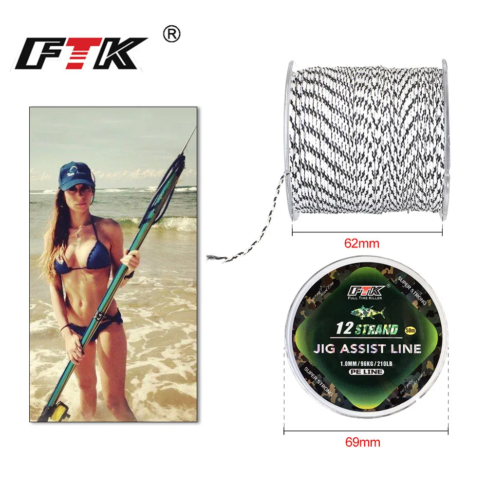 FTK 50m 12 hebras Pe trenzado hilo de lanza 70LB 140LB 210LB hilo de pescar multifilamento accesorios de agua salada