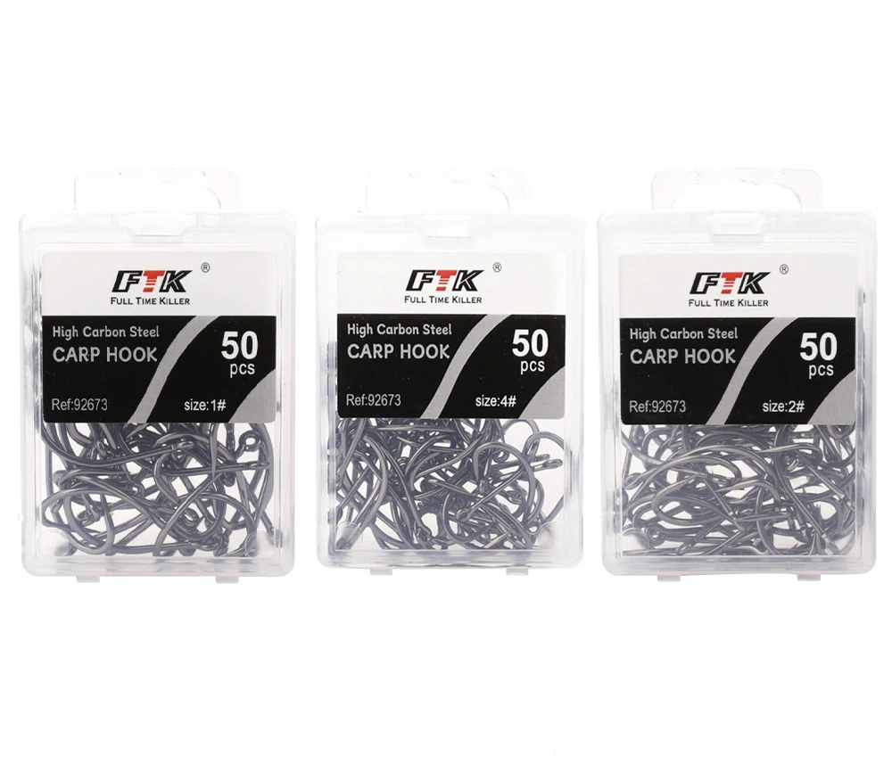 FTK 50PCS Europa Feeder Anzuelos de pesca Acero con alto contenido de carbono 1 # -10 # Anzuelo de carpa con púas de un solo círculo con accesorios de pesca ocular
