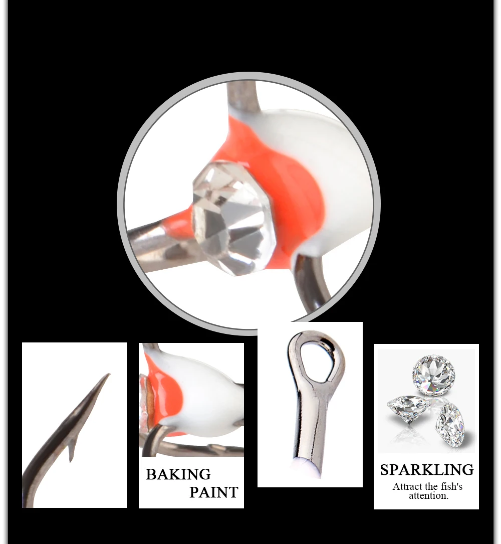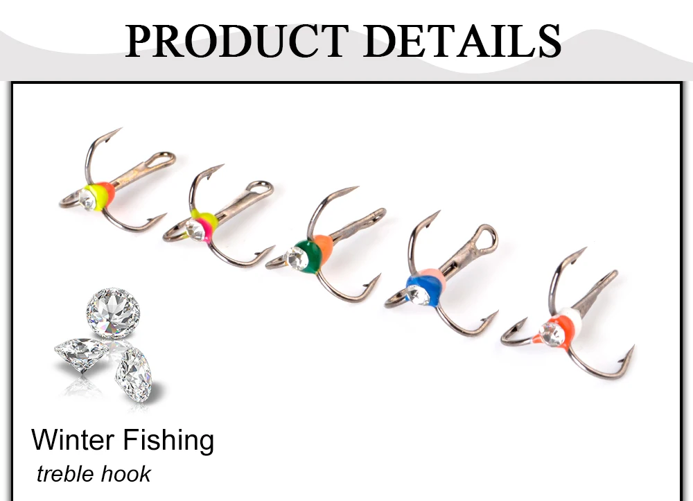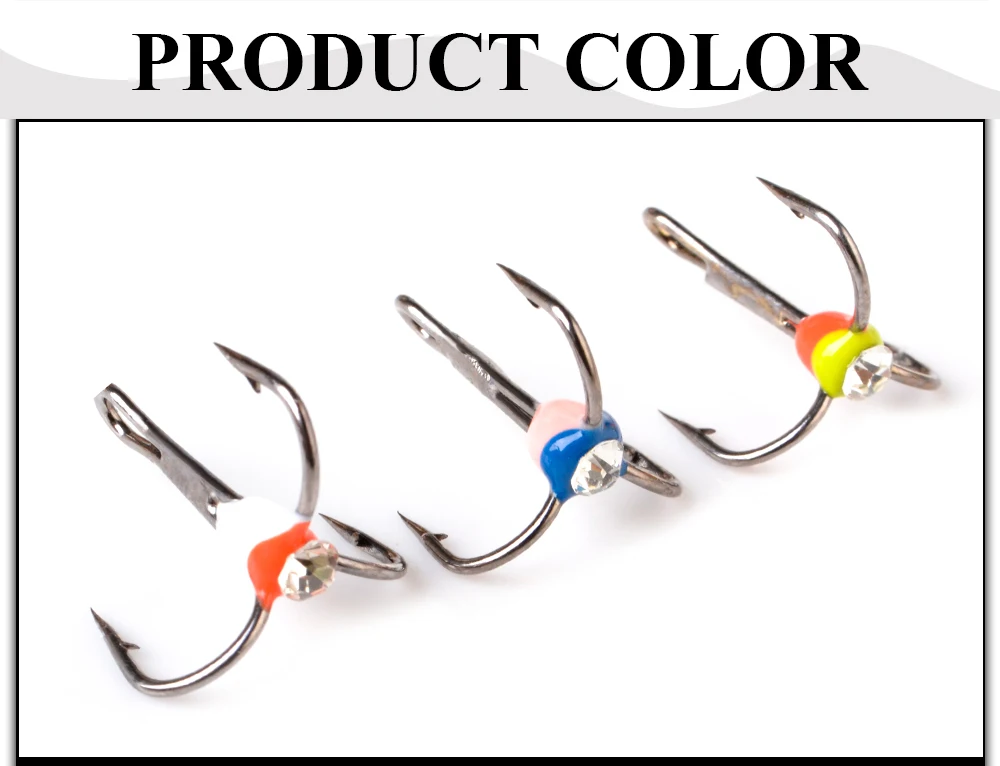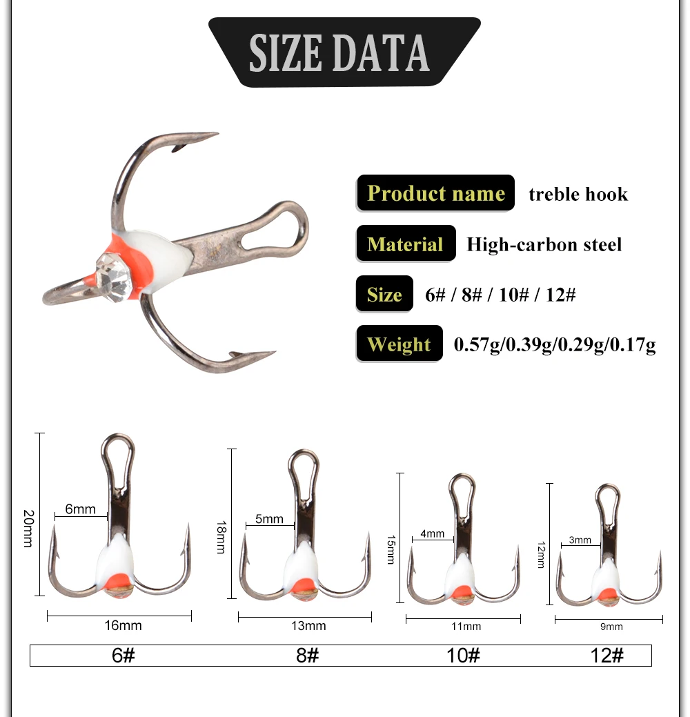 FTK 5PCS Anzuelos de pesca en hielo de acero rico en carbono 6 # -12 # Aparejos de señuelo con anzuelo triple para pesca de invierno